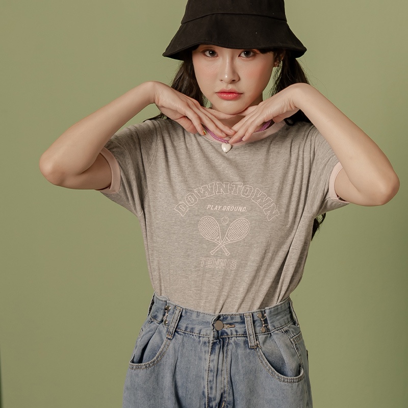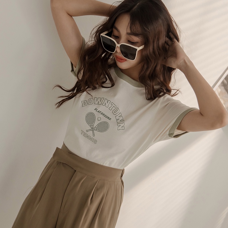 Space Picnic|正韓-網球拍滾邊T恤-3色【K22044011】