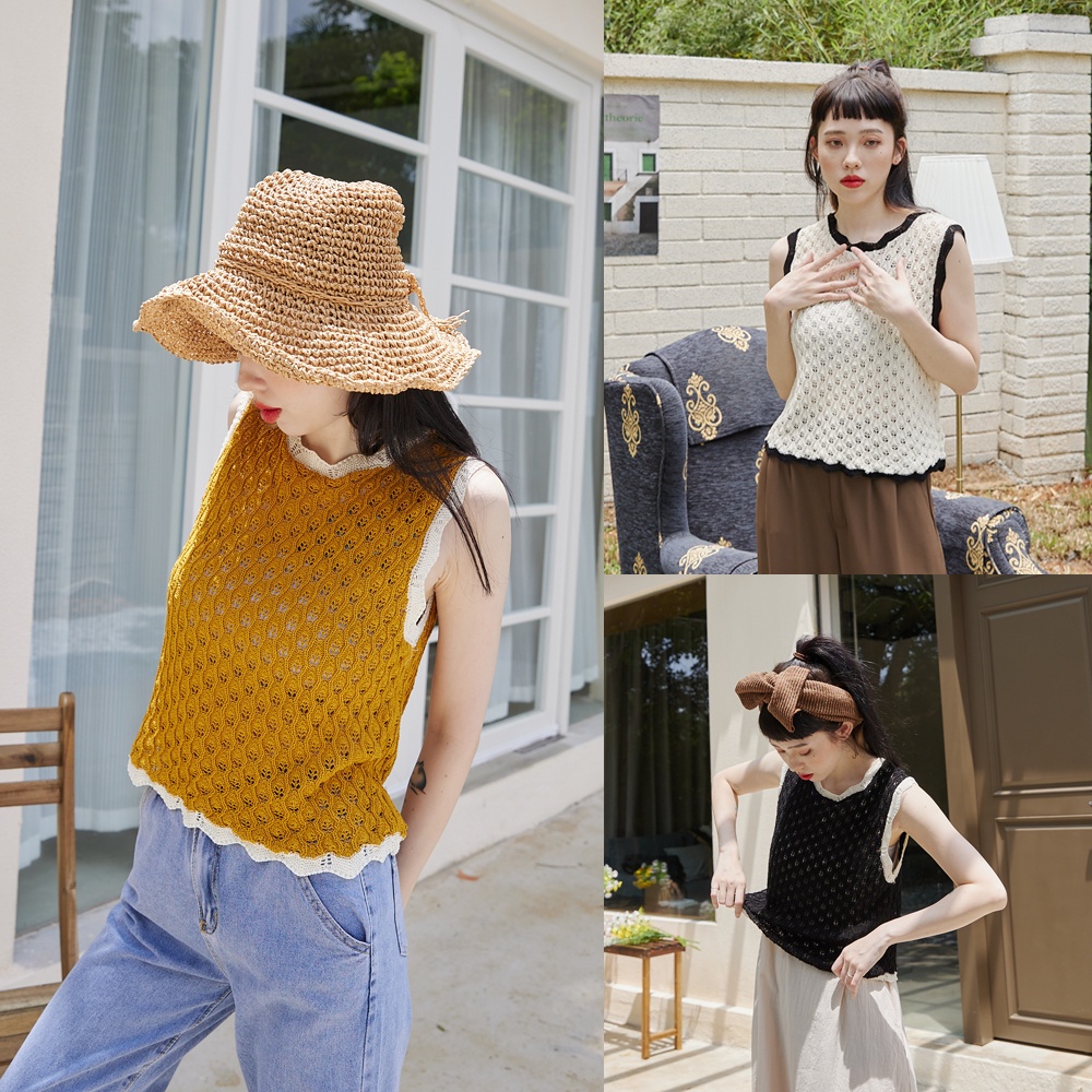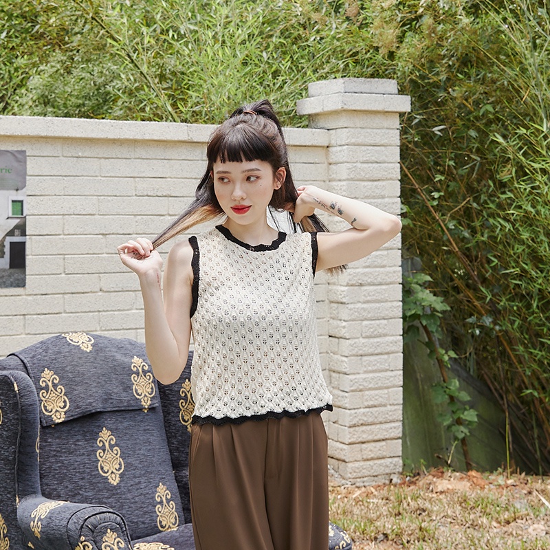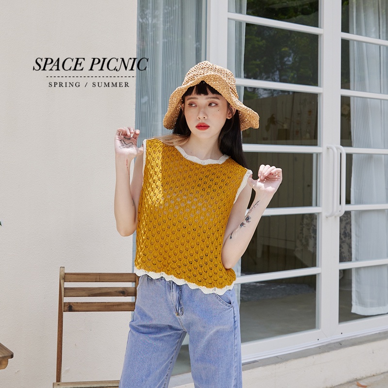 Space Picnic|滾邊鏤空背心-3色【C22061017】
