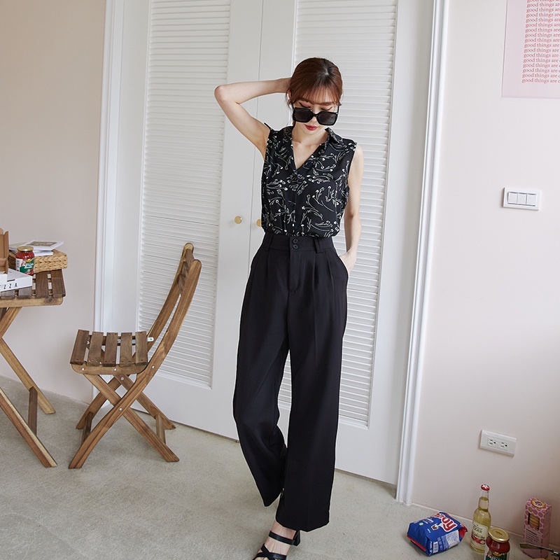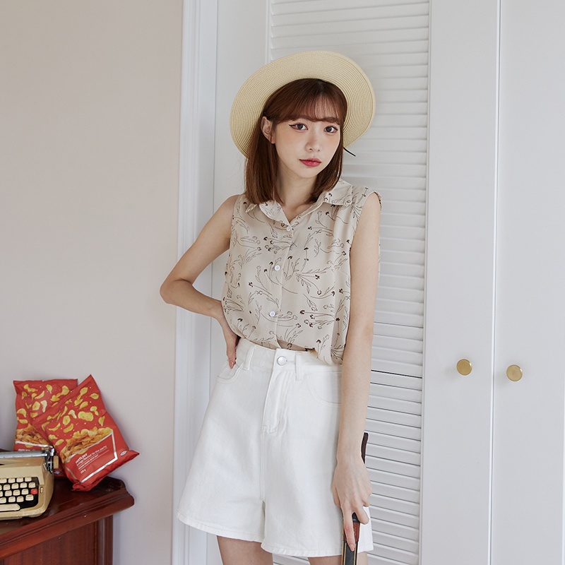 Space Picnic|線條花草無袖襯衫-4色【C22051041】