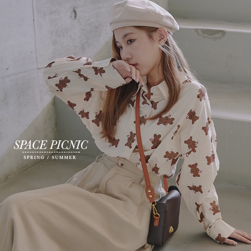 Space Picnic|小熊印圖長袖襯衫-2色【C22081044】