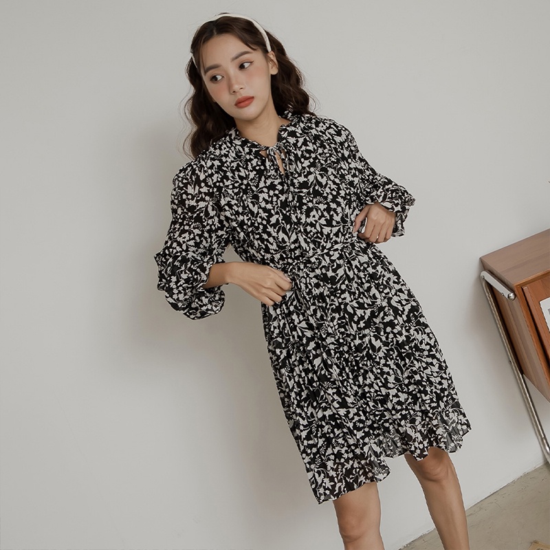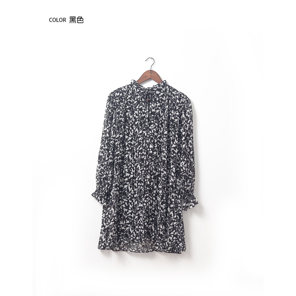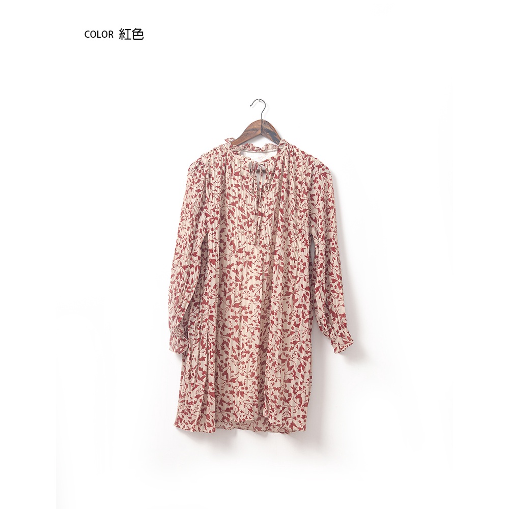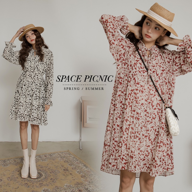 Space Picnic|枝葉V領百摺洋裝-附綁帶-3色【C22085008】