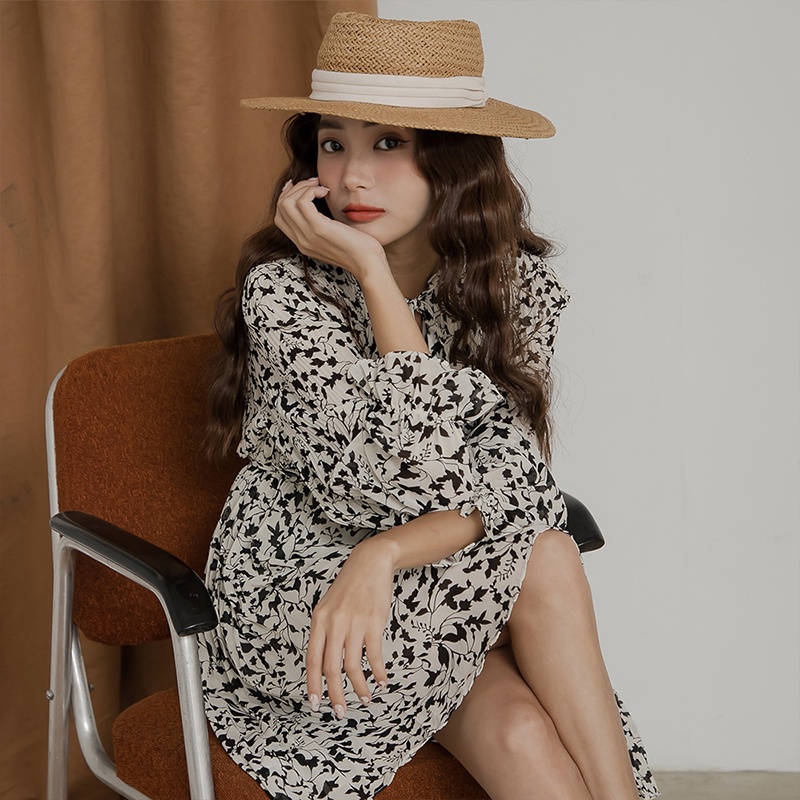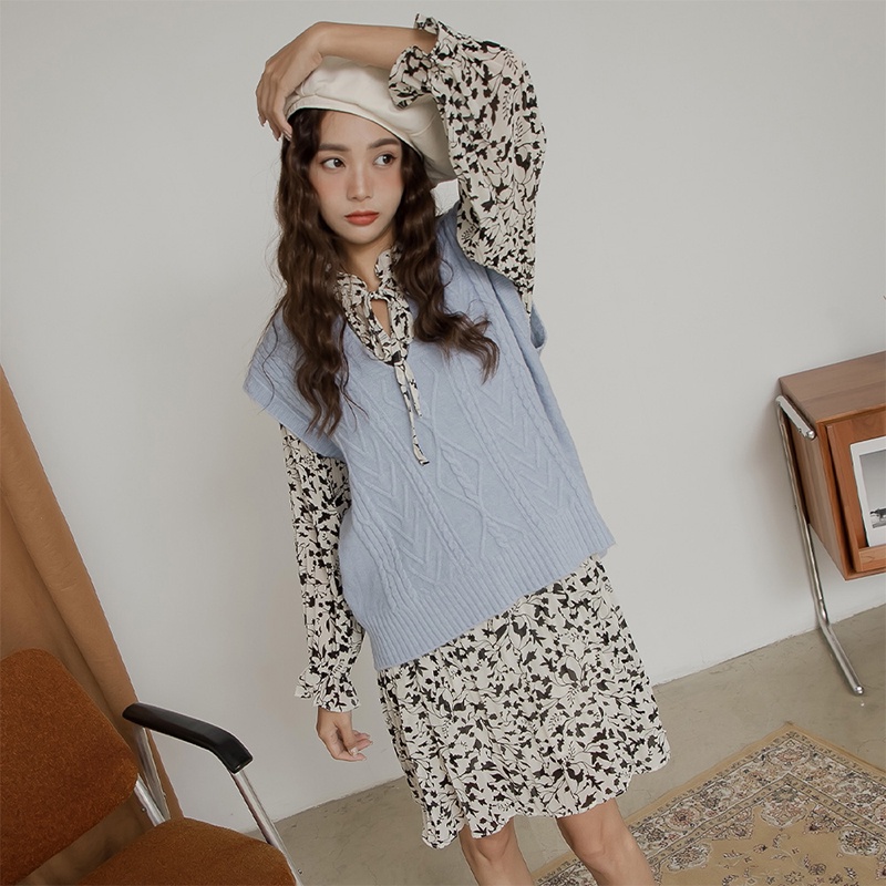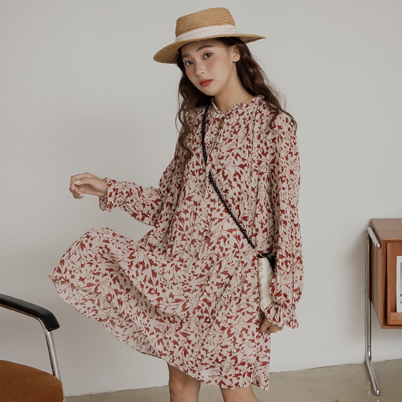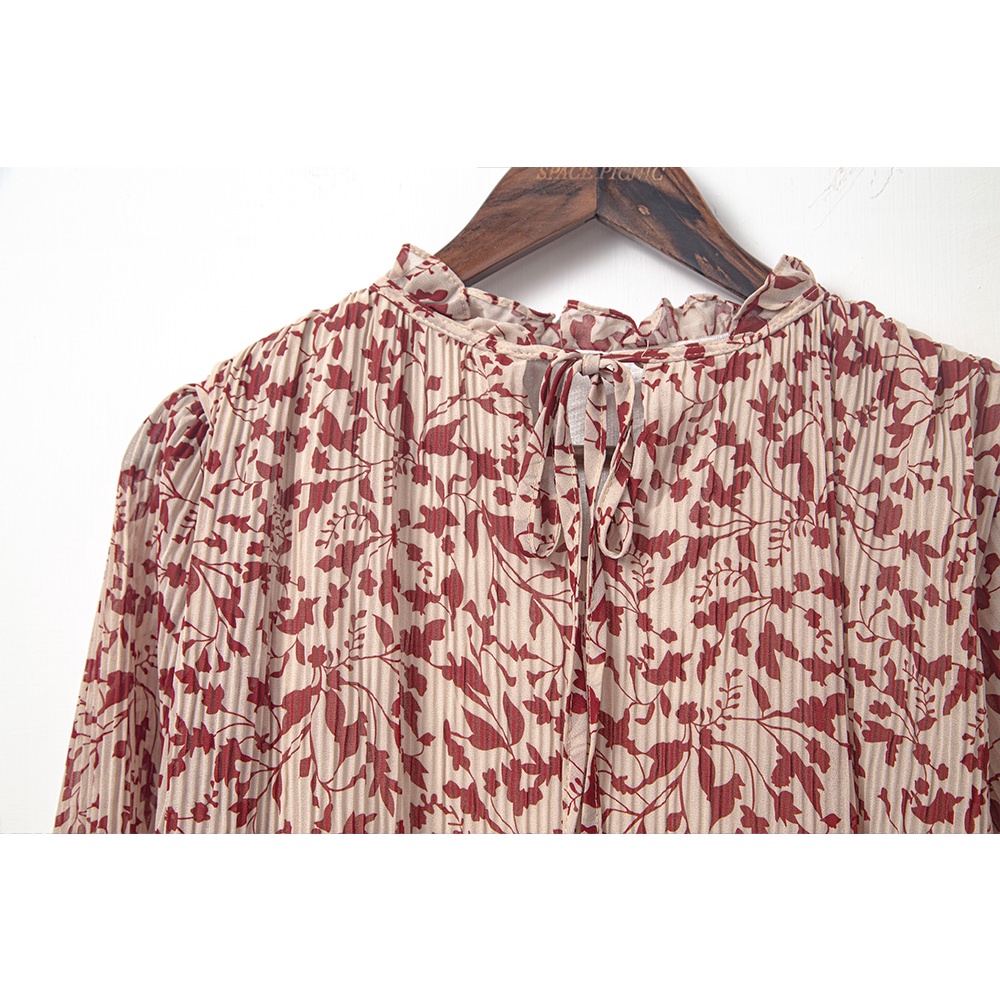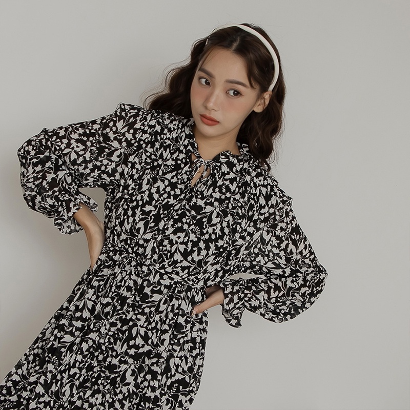 Space Picnic|枝葉V領百摺洋裝-附綁帶-3色【C22085008】