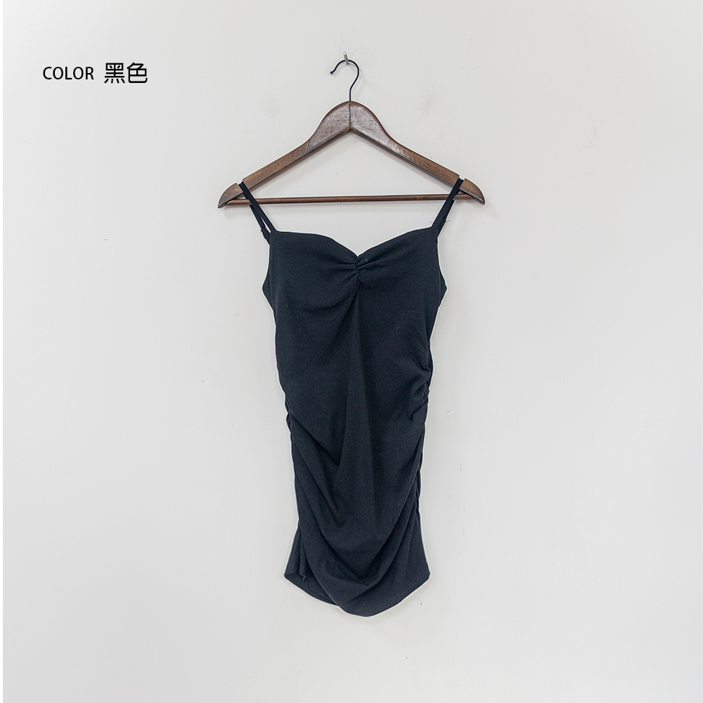 Space Picnic|側抓皺細肩胸墊洋裝-2色【C23071029】