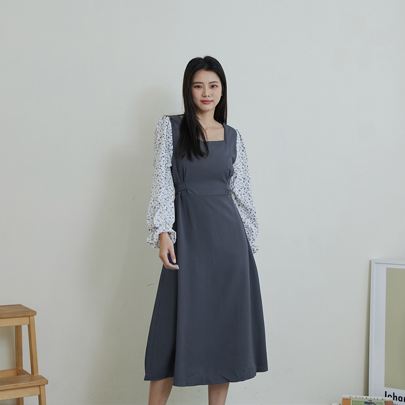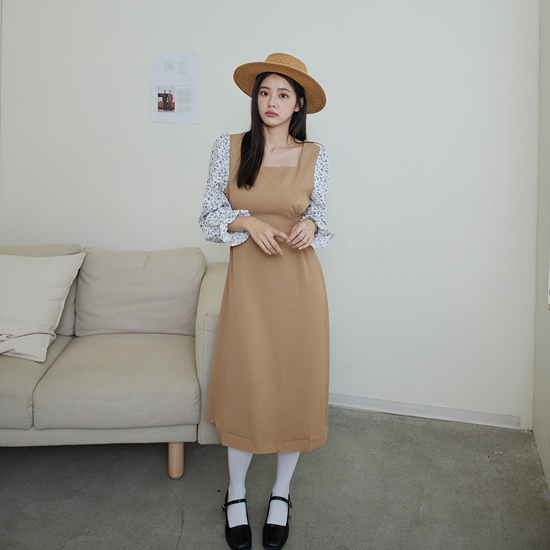 Space Picnic|拼接碎花袖方領洋裝-4色【C23021040】