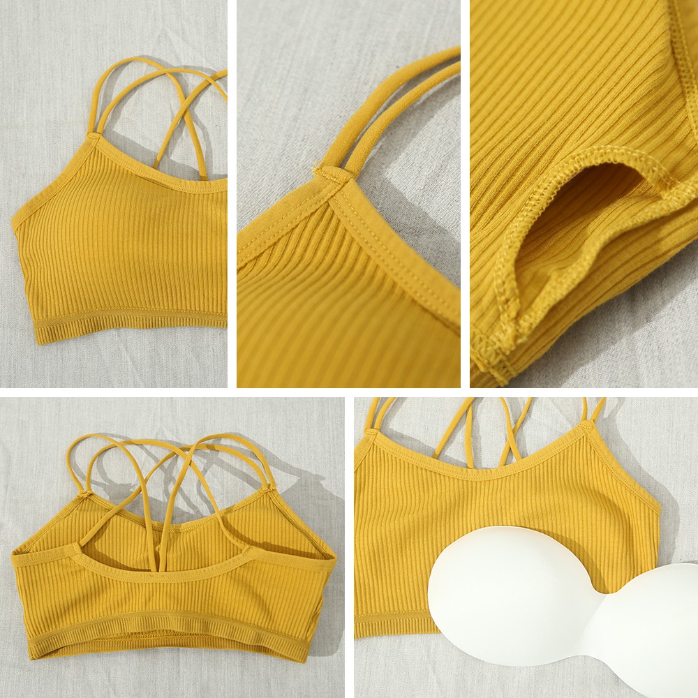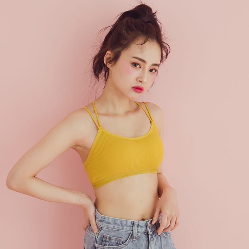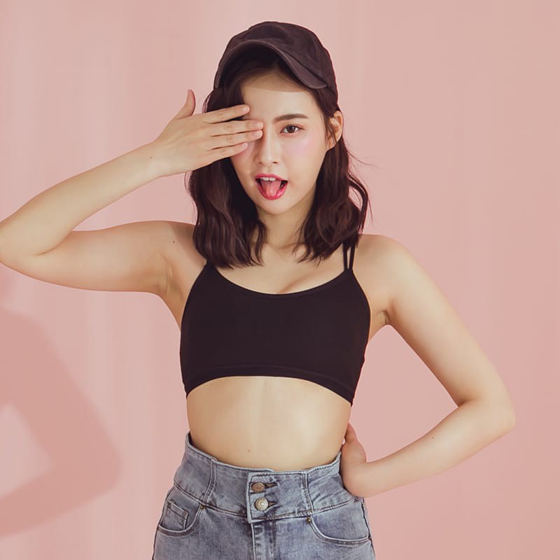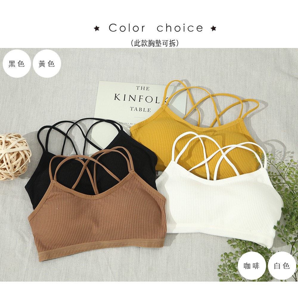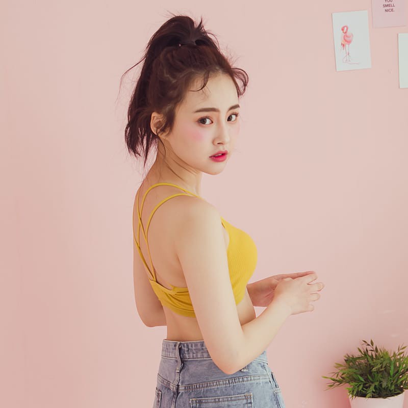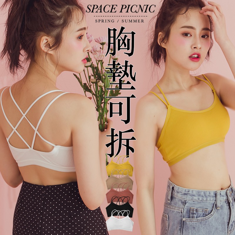 Space Picnic|細肩交叉坑條胸墊小可愛背心【C19031097】