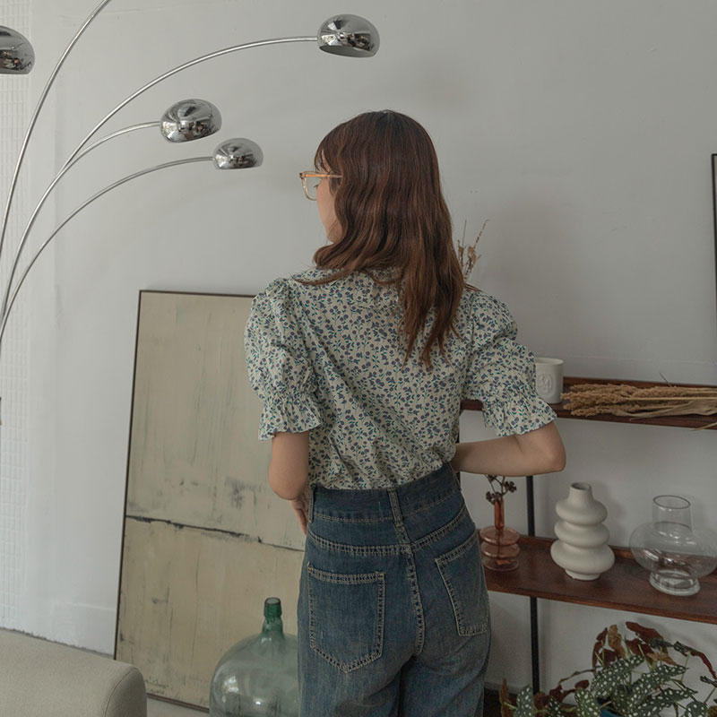 Space Picnic|荷葉排扣小碎花上衣-3色【C23071016】