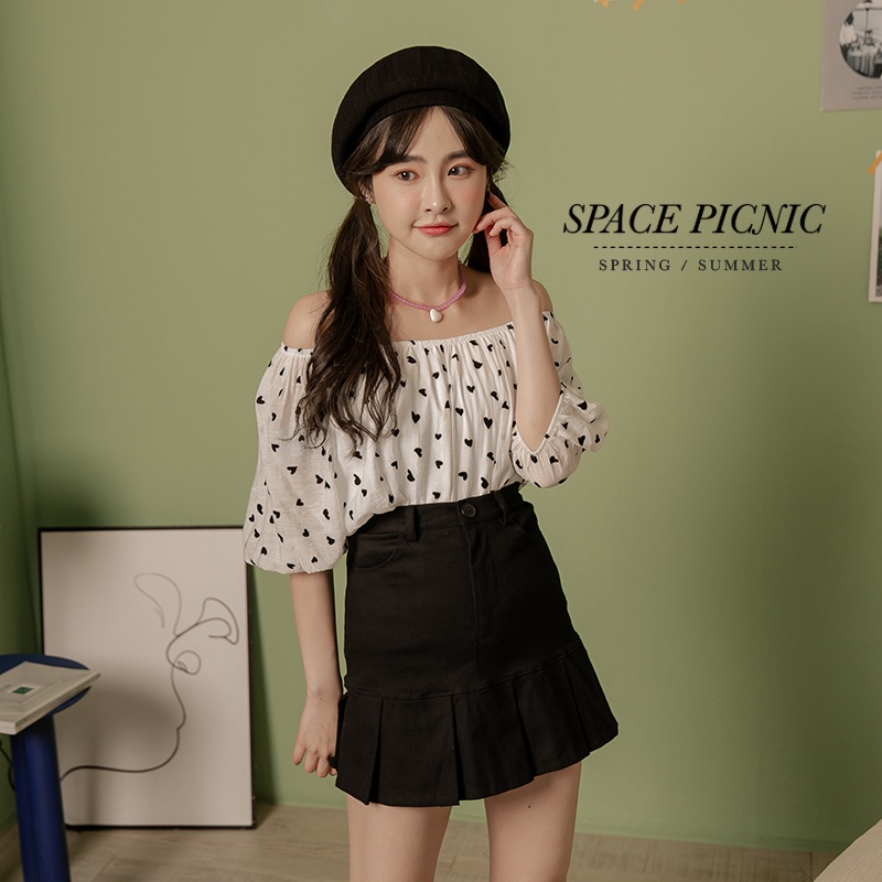 Space Picnic|絨愛心一字領上衣-2色【C22043071】