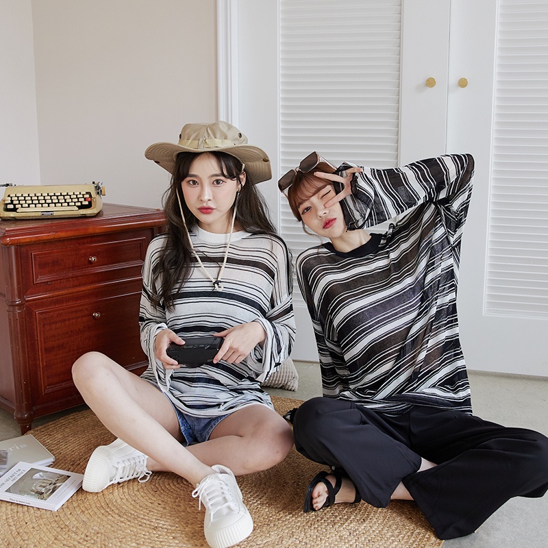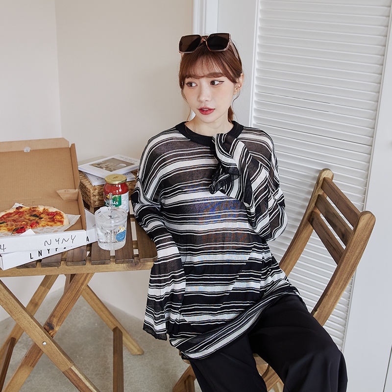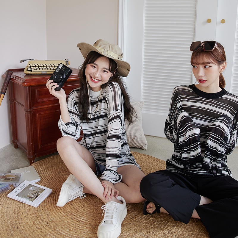 Space Picnic|條紋透膚長袖上衣-2色【C22051082】