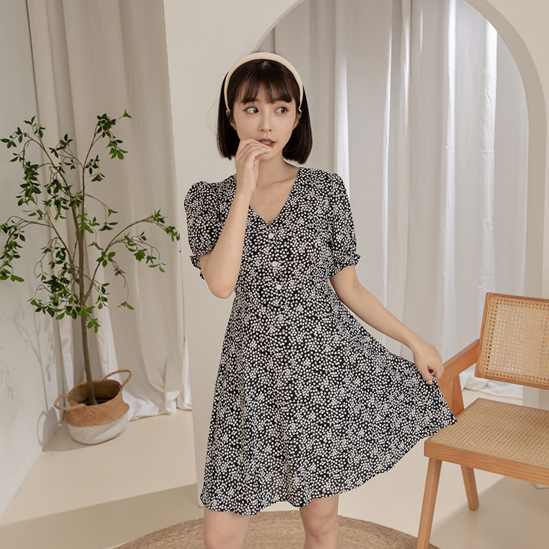 Space Picnic|自訂款-V領小白花洋裝-3色【C23051064】