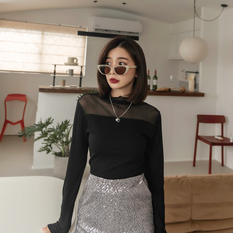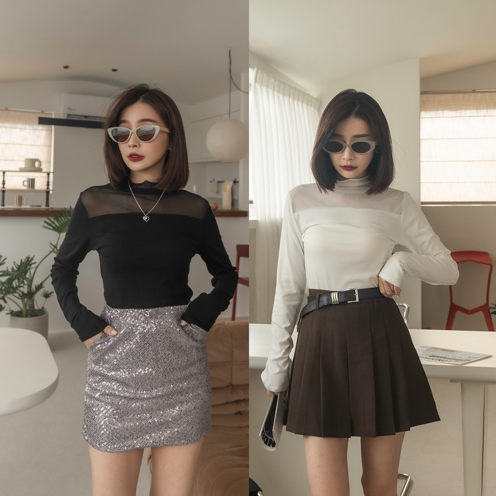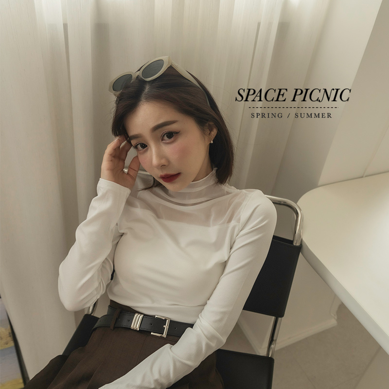 Space Picnic|立領網紗微透上衣-2色【C23091012】