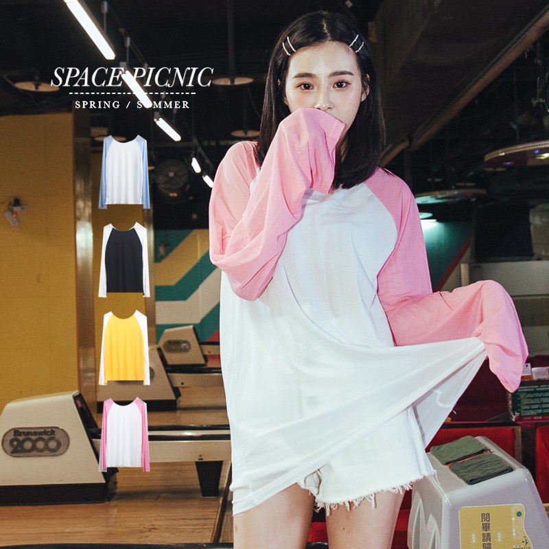 Space Picnic|拼色圓領素面長袖上衣【C19042076】