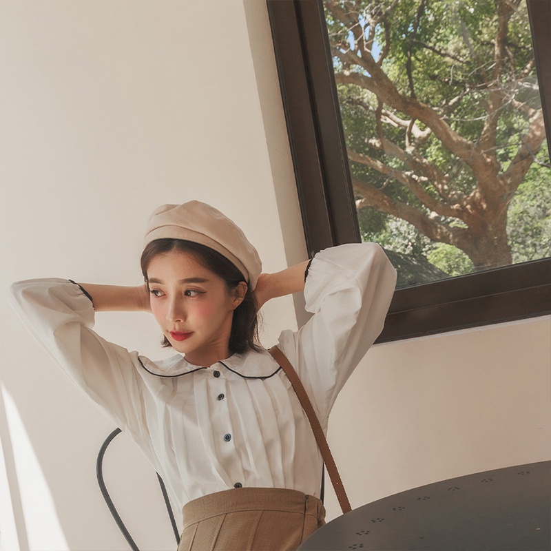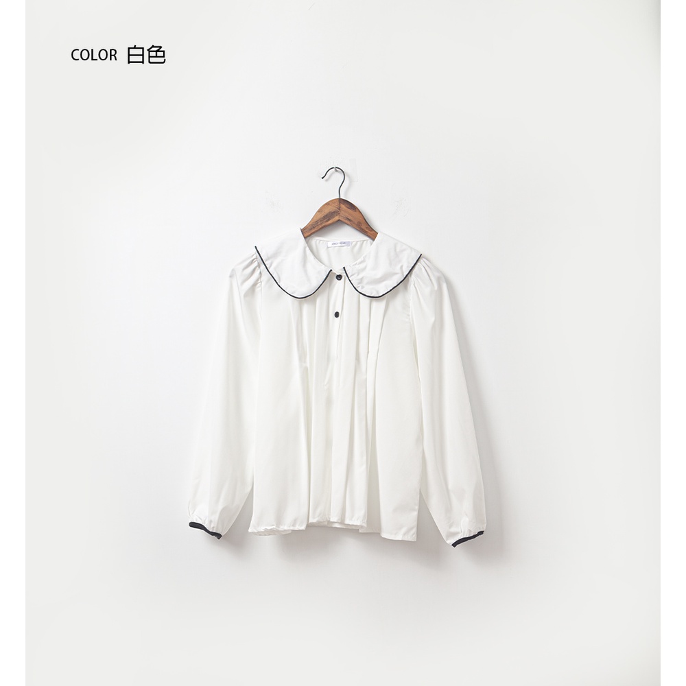 Space Picnic|滾邊娃娃領百摺襯衫-3色【C22085063】