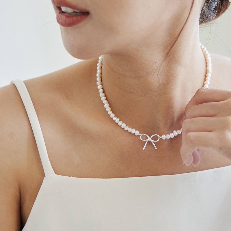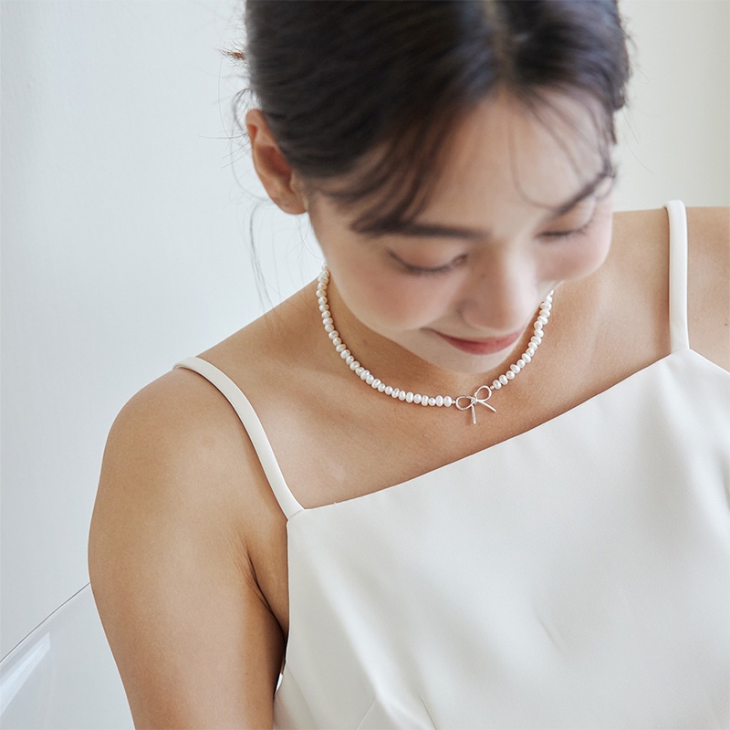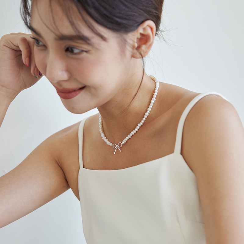 Space Picnic|正韓-珍珠蝴蝶結鎖骨鏈-1色【K22062001】