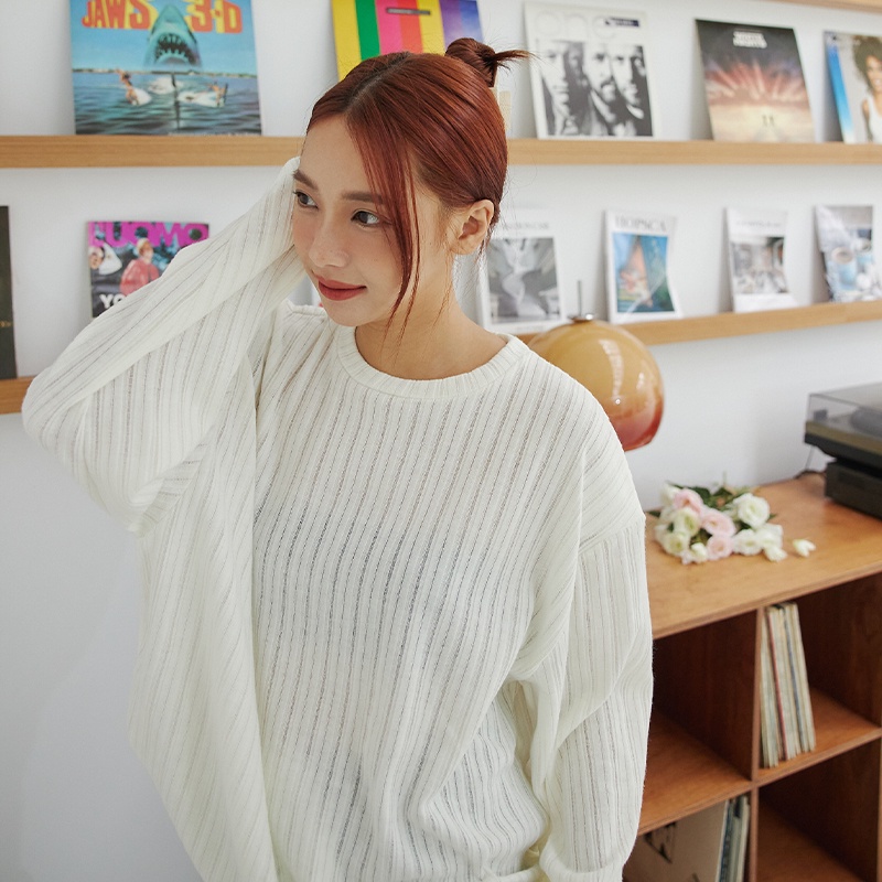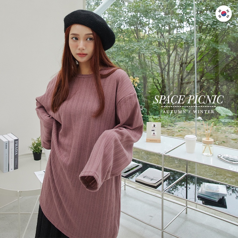 Space Picnic|正韓-坑條墊肩長版上衣-3色【K22104044】