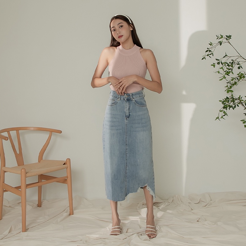 Space Picnic|大抓破A字牛仔長裙-1色【C22071005】