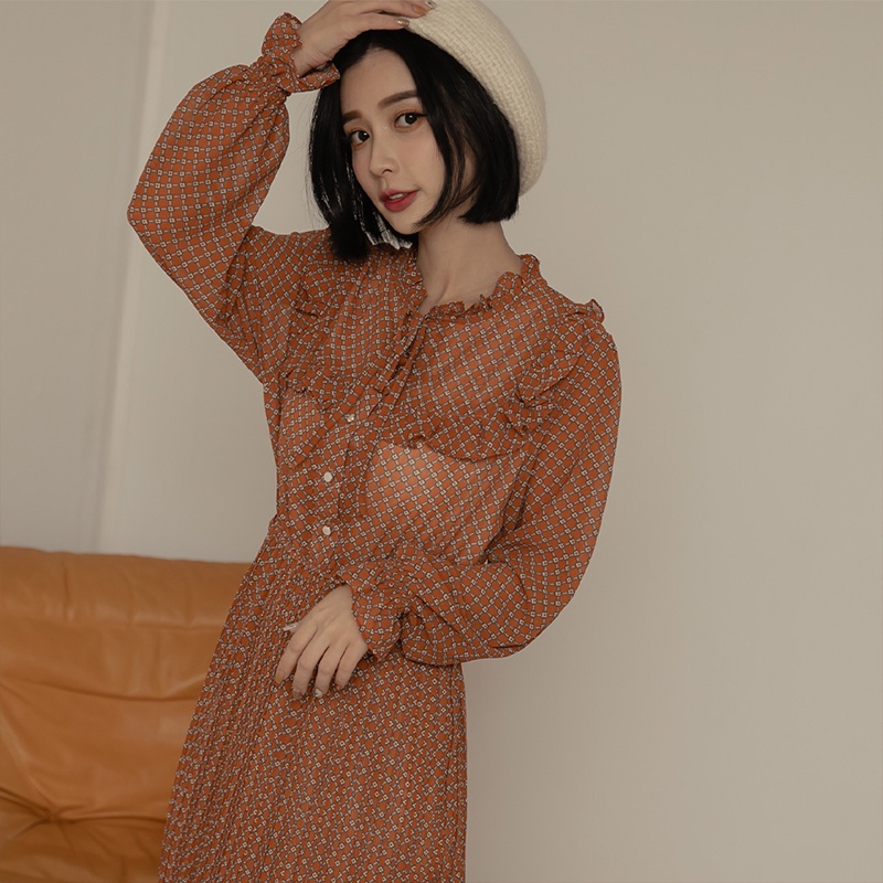 Space Picnic|復古花雪紡洋裝-2色【C22101059】