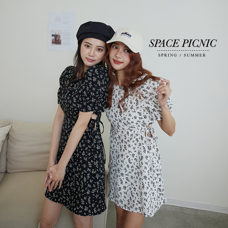 Space Picnic|碎花簍空腰短洋裝-2色【C23021049】