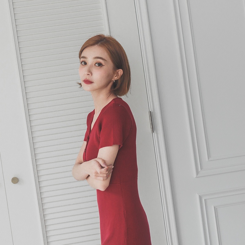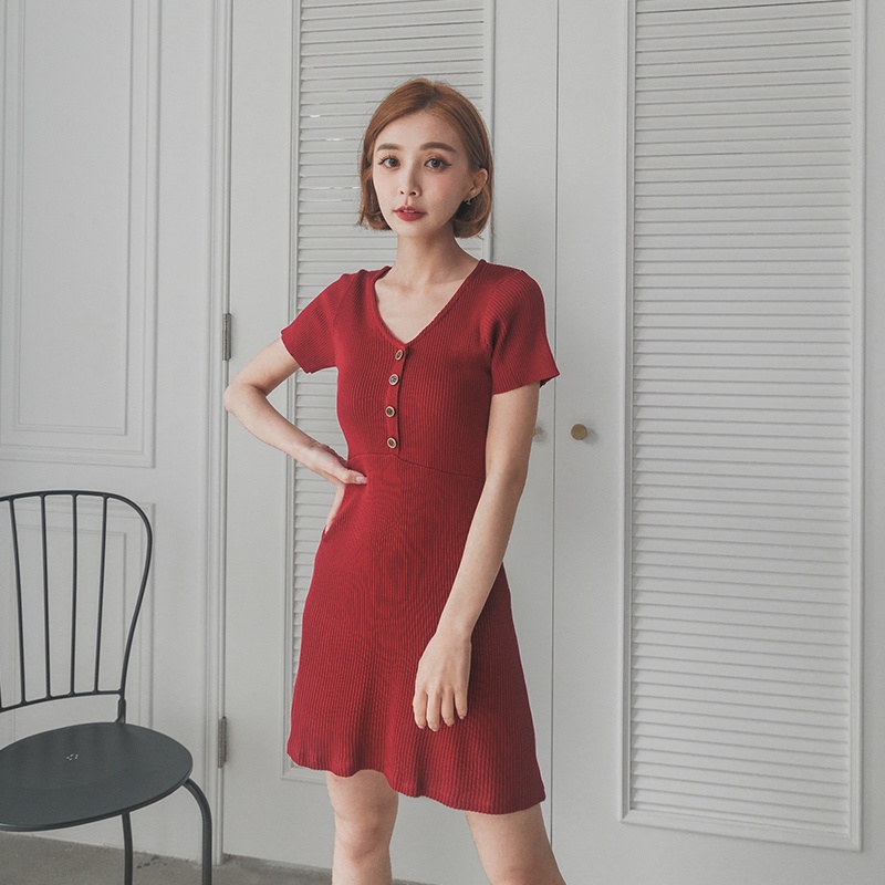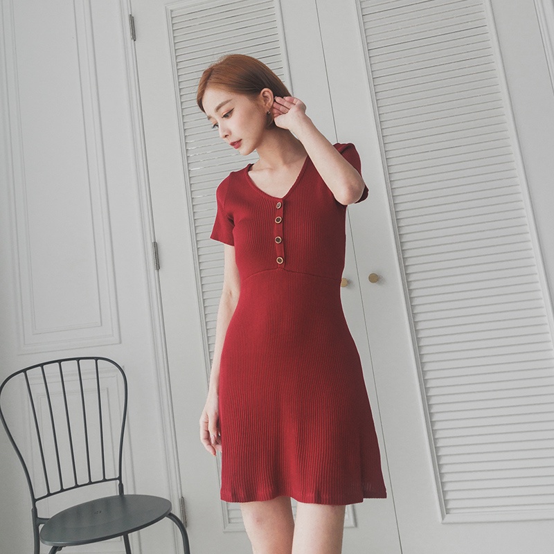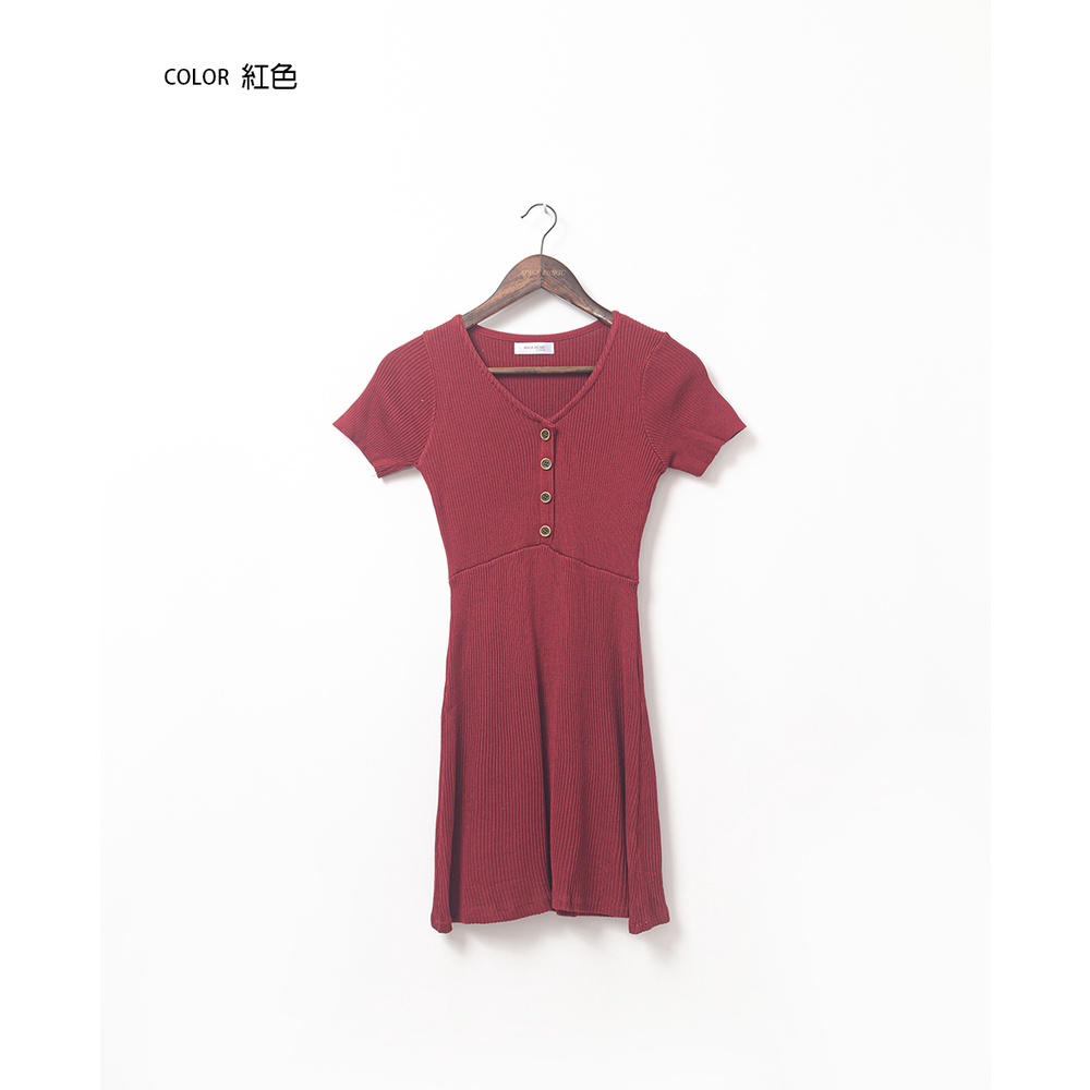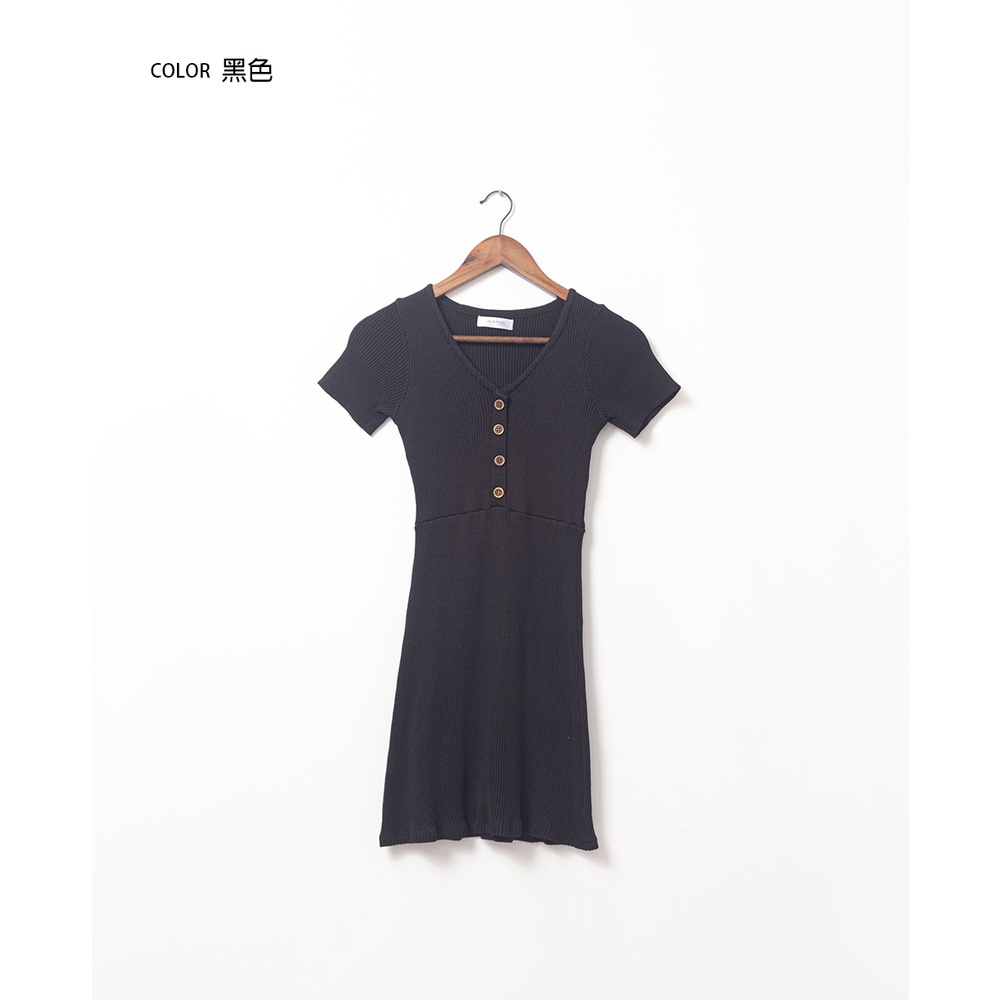 Space Picnic|V領木釦彈性洋裝-2色【C22051019】