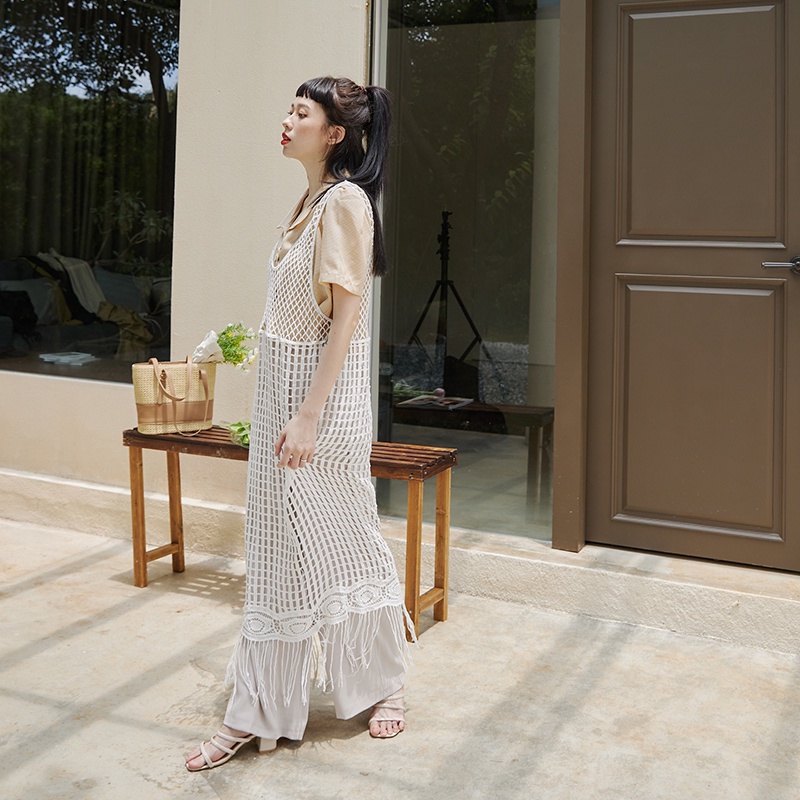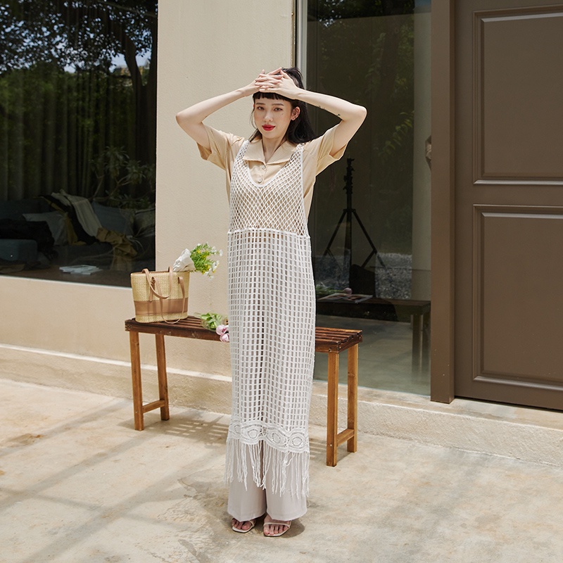 Space Picnic|鏤空流蘇背心洋裝-2色【C22051059】