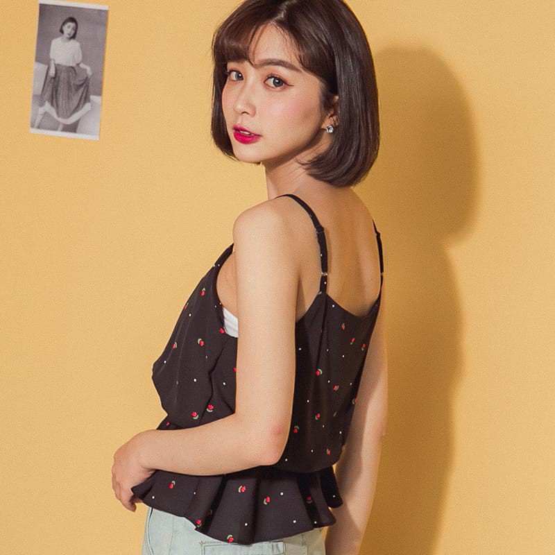Space Picnic|肩可調小花荷葉下擺細肩背心【C19044027】