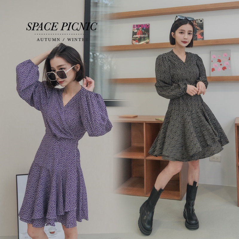 Space Picnic|點點小花一片裙洋裝-3色【C22091044】