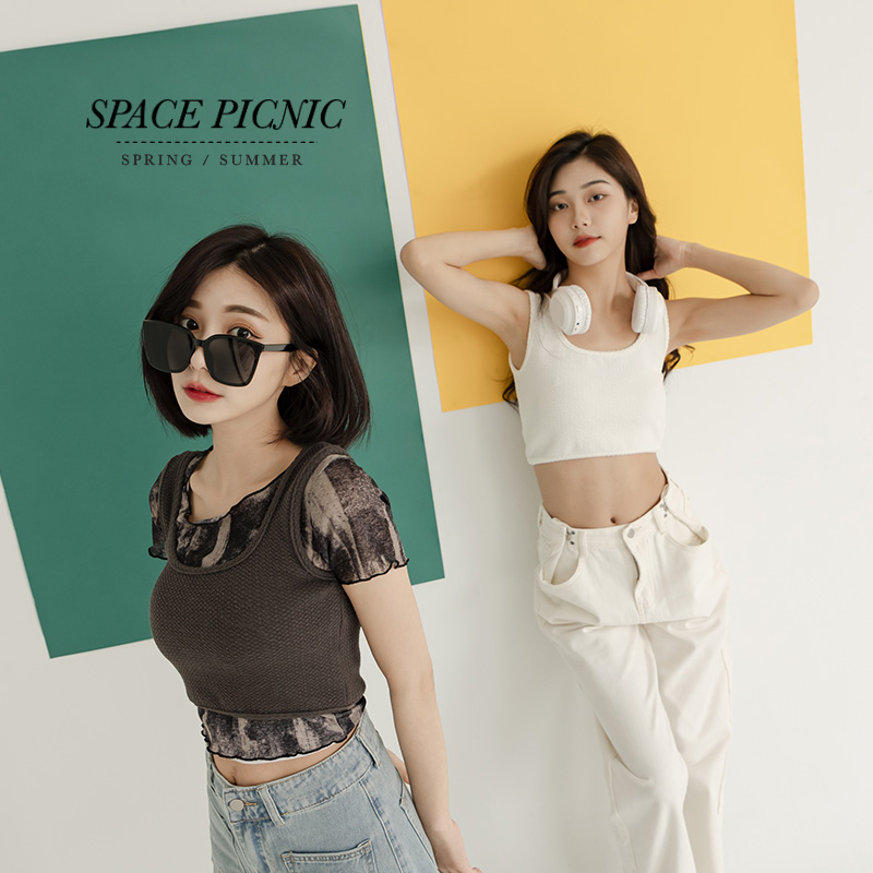 Space Picnic|正韓-方領華夫格短版背心-3色【K23073006】