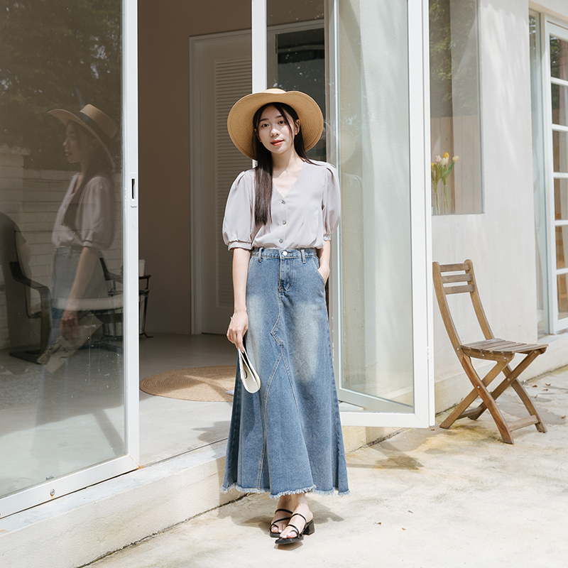 Space Picnic|魚尾抽鬚牛仔裙-2色【C23051085】