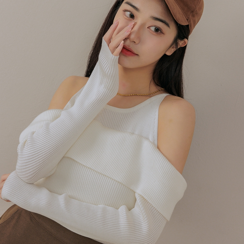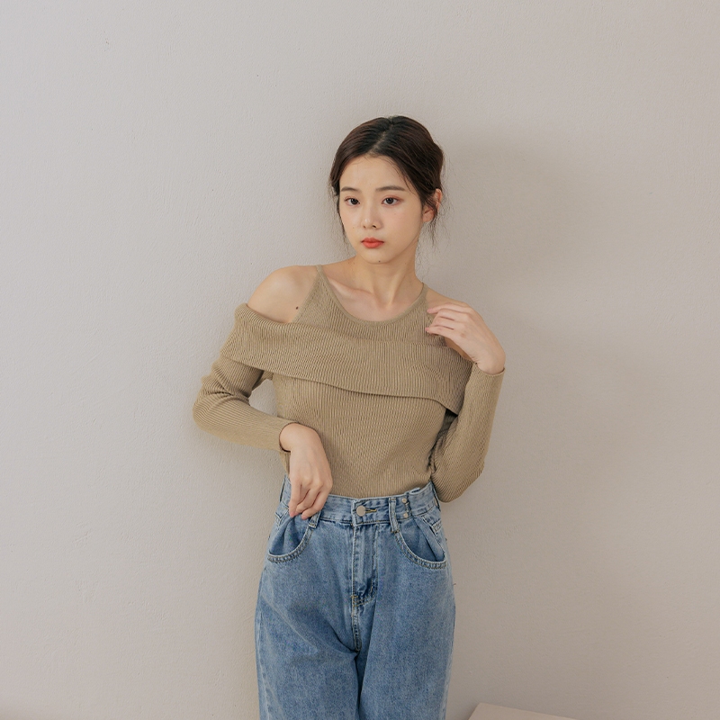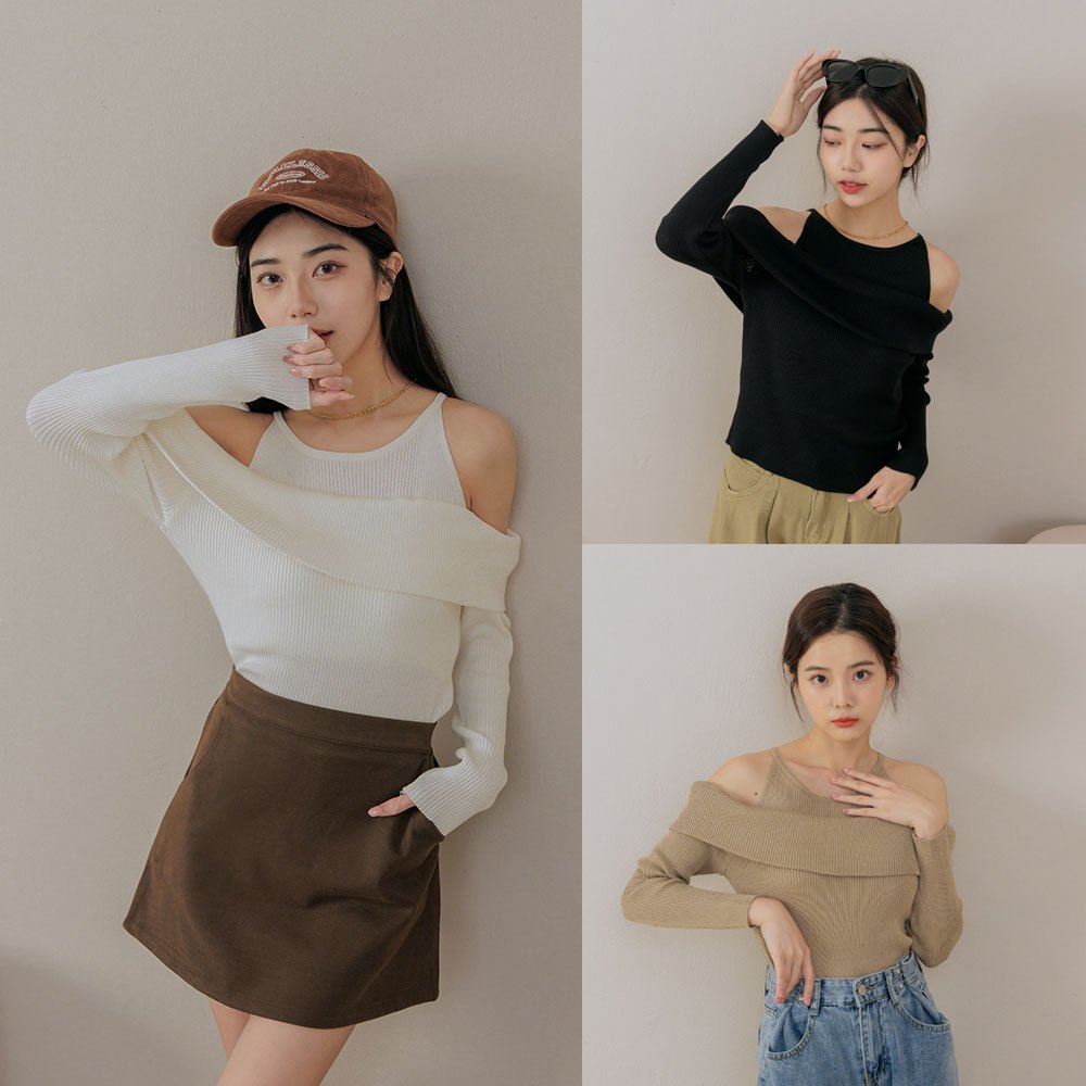 Space Picnic|露肩翻領針織上衣-3色【C23101084】