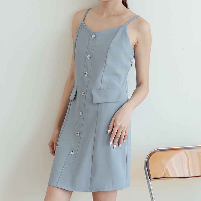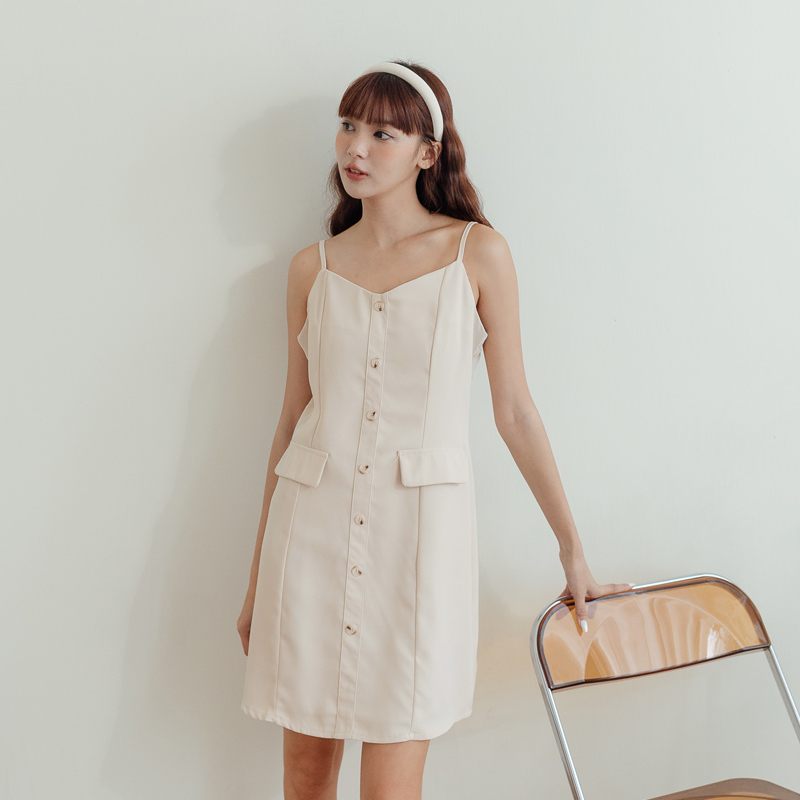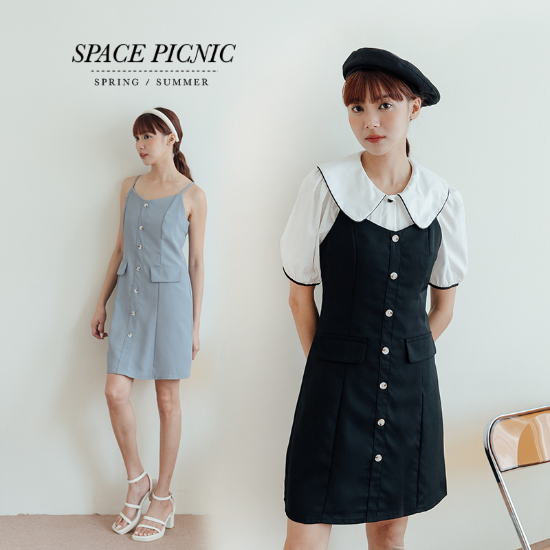 Space Picnic|琥珀排釦細肩洋裝-4色【C23031021】