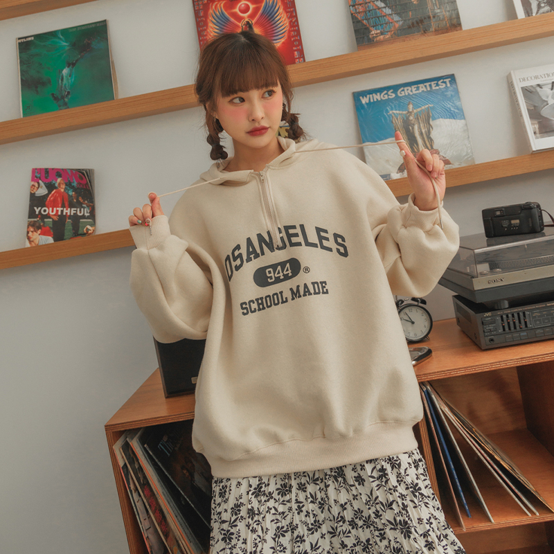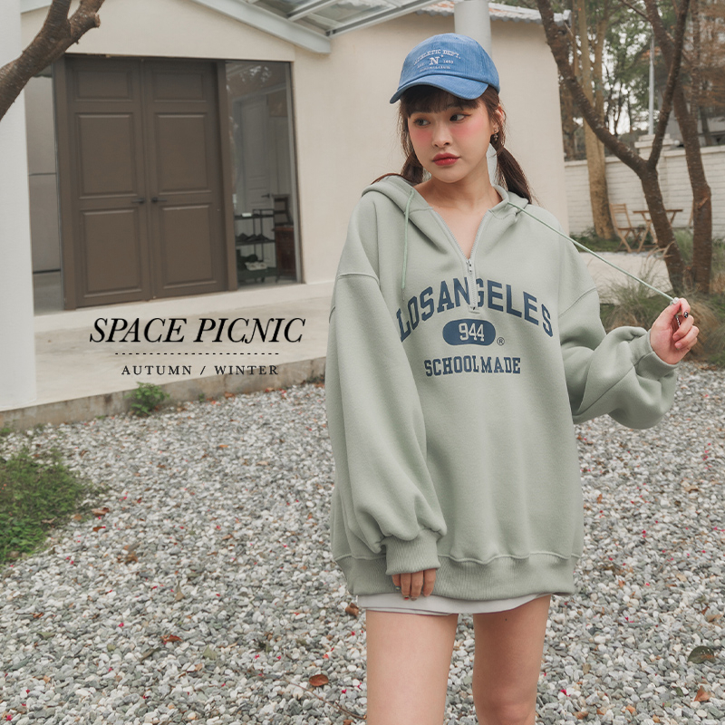 Space Picnic|字母內刷毛拉鍊連帽T-3色【C22121009】【C22121009】