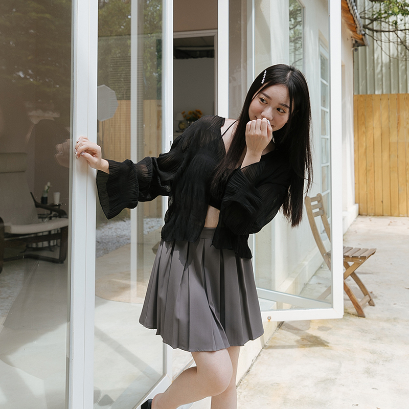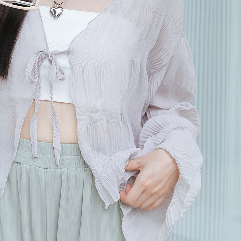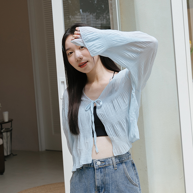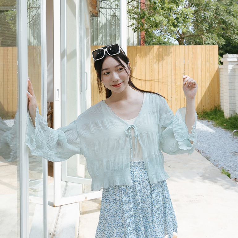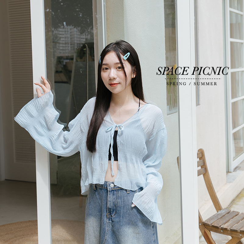 Space Picnic|壓紋綁帶雪紡罩衫-5色【C23054038】