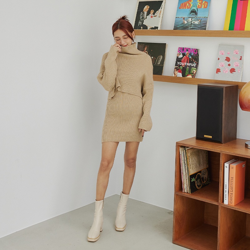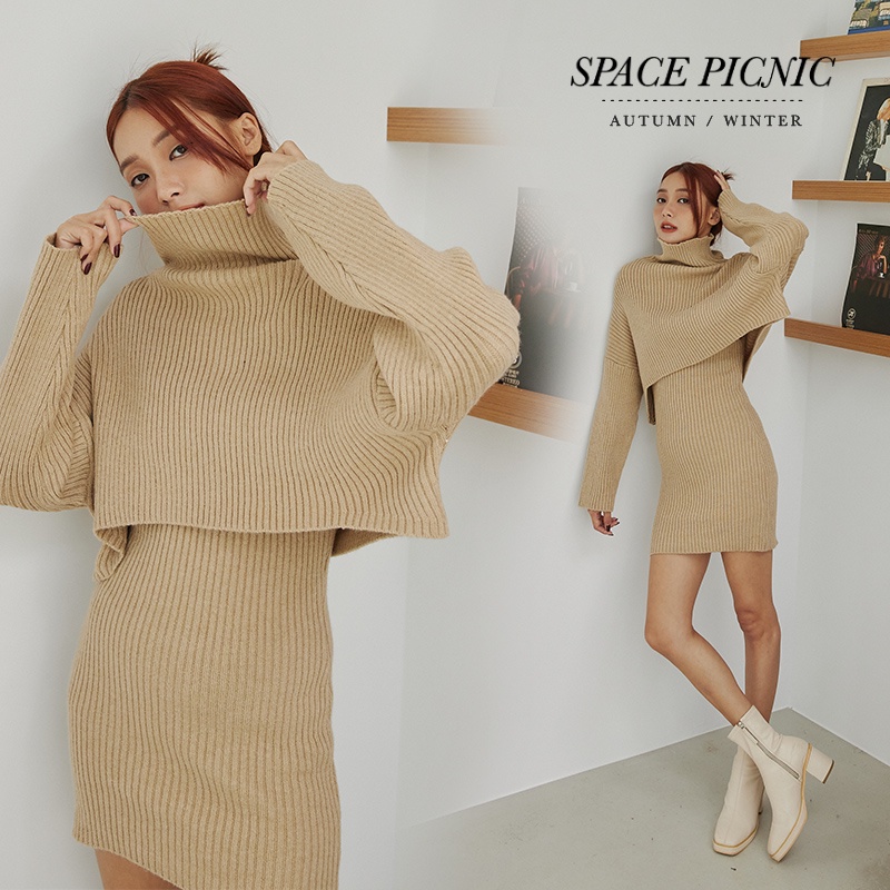 Space Picnic|兩件式-針織高領上衣+洋裝-2色【C22111033】