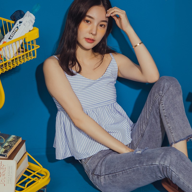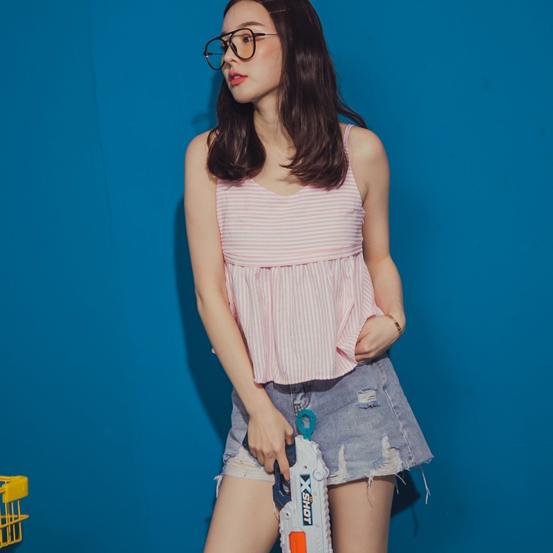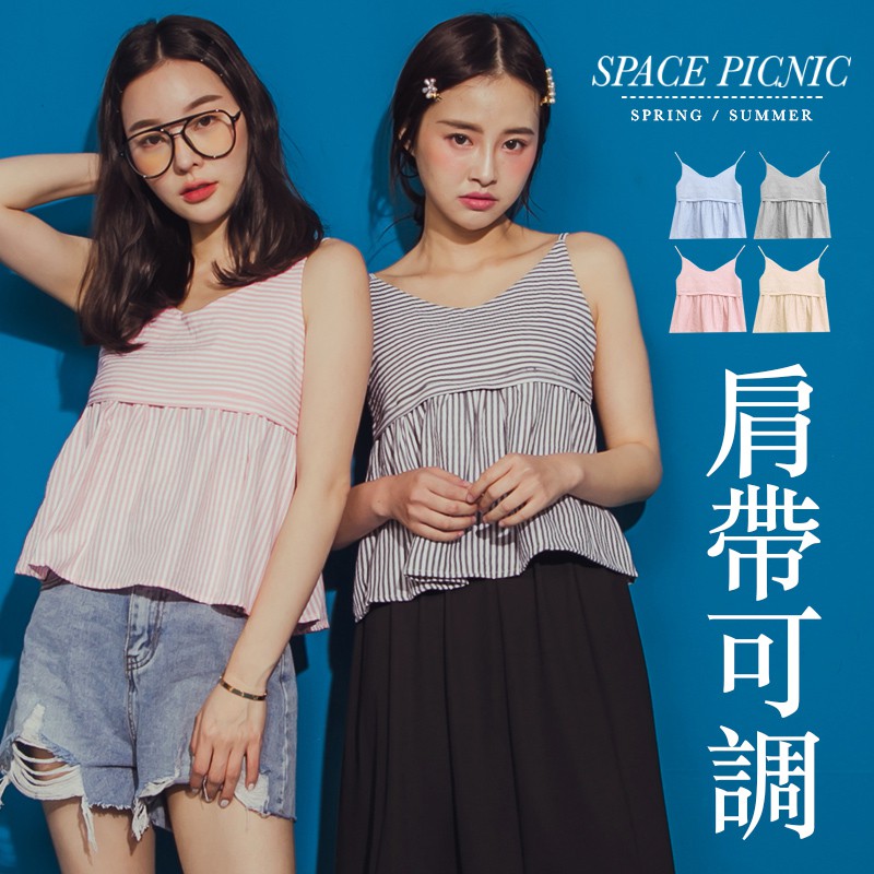 Space Picnic|條紋V領細肩短版背心【C19061027】