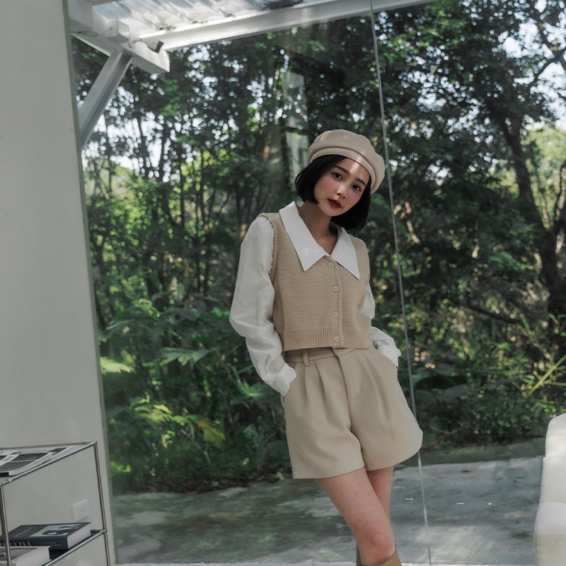 Space Picnic|雙釦挺版毛呢短褲-4色【C23112052】