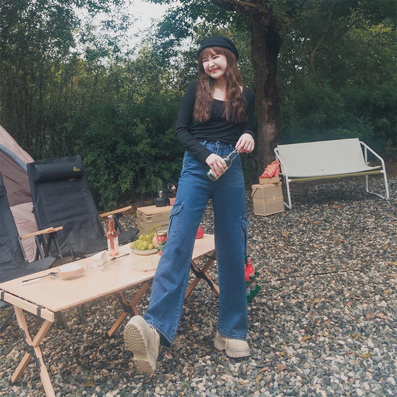 Space Picnic|牛仔直筒工裝褲-1色【C22091011】