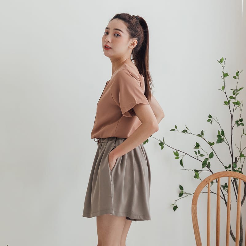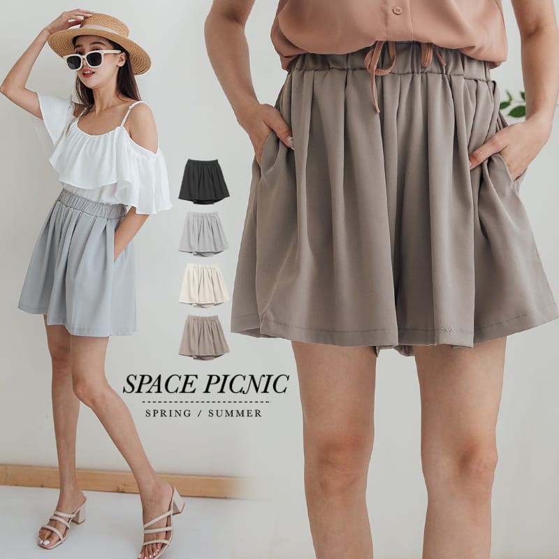 Space Picnic|素面鬆緊寬鬆短褲【C21042047】