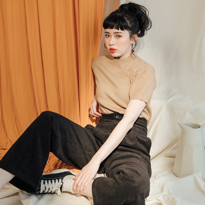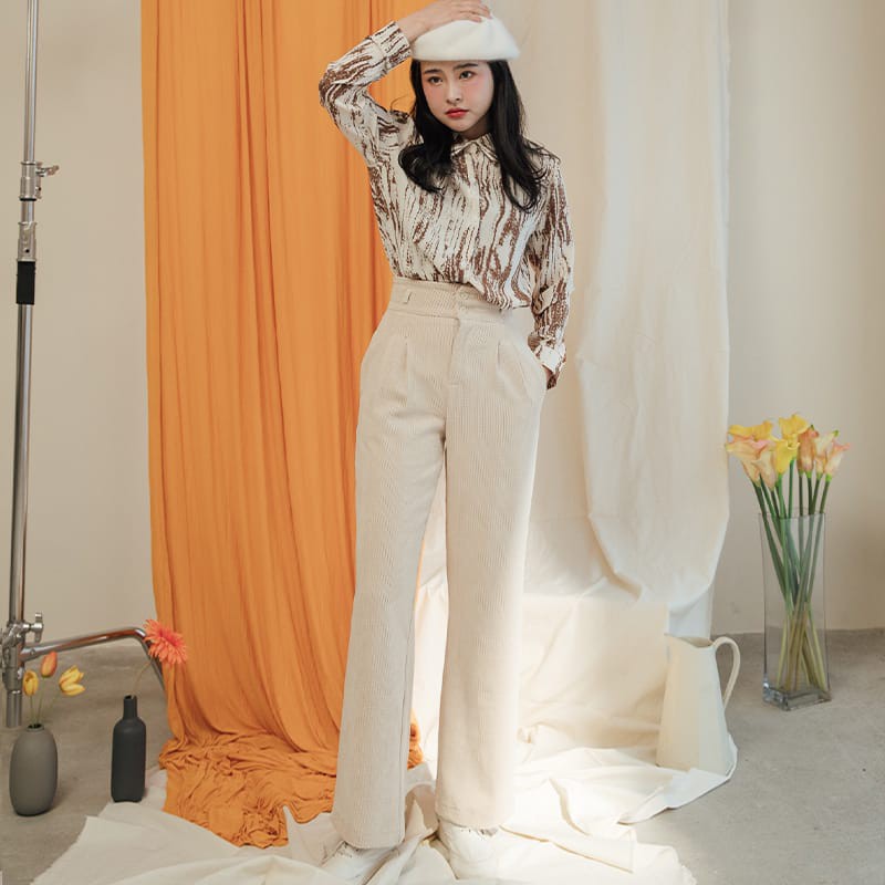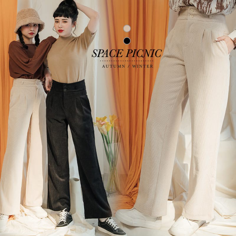 Space Picnic|雙釦高腰絨面寬褲【C20122043】