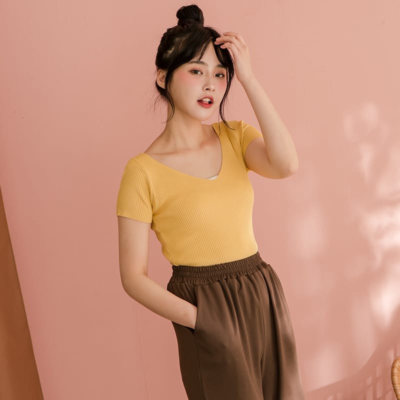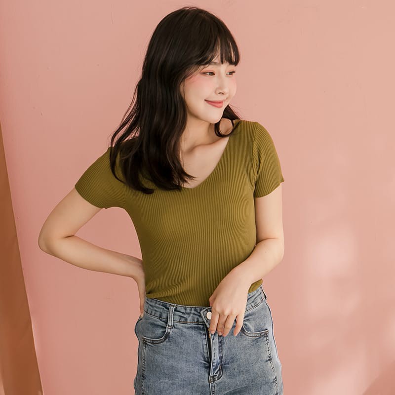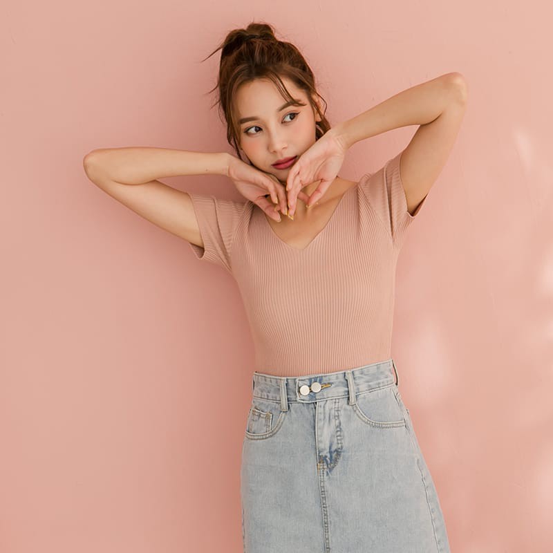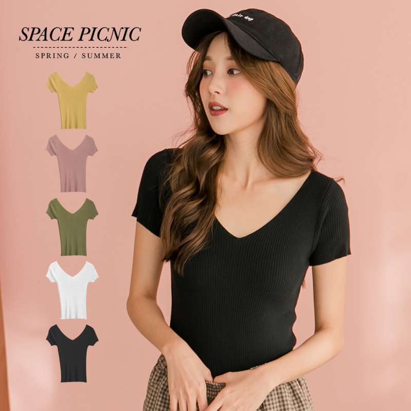 Space Picnic|針織壓紋V領短袖上衣【C20033016】