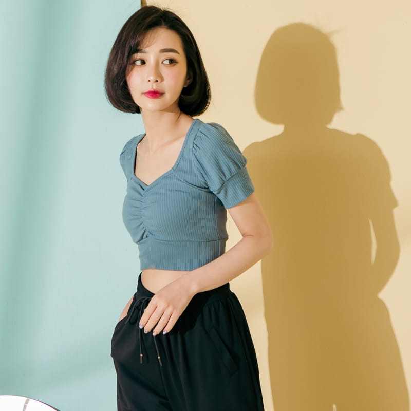 Space Picnic|細坑條方領短版短袖上衣【C20036021】