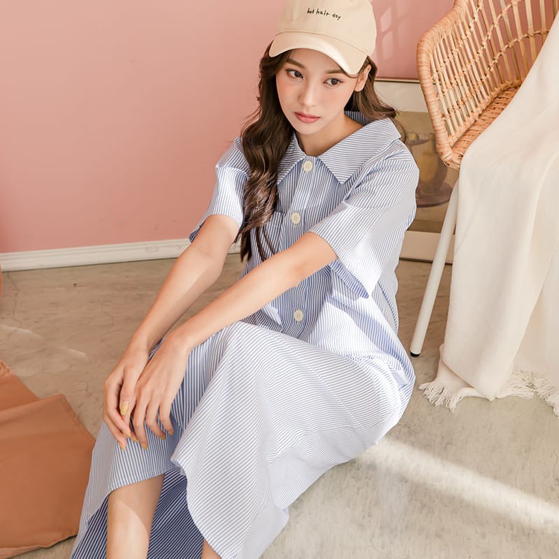 Space Picnic|MIT-條紋排釦短袖長版洋裝【A20031001】