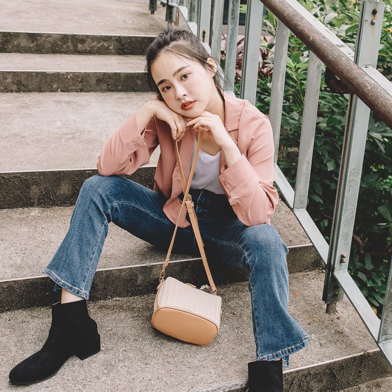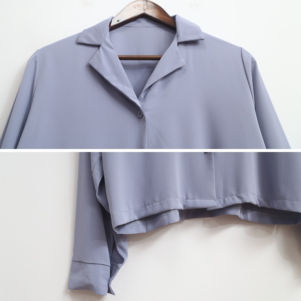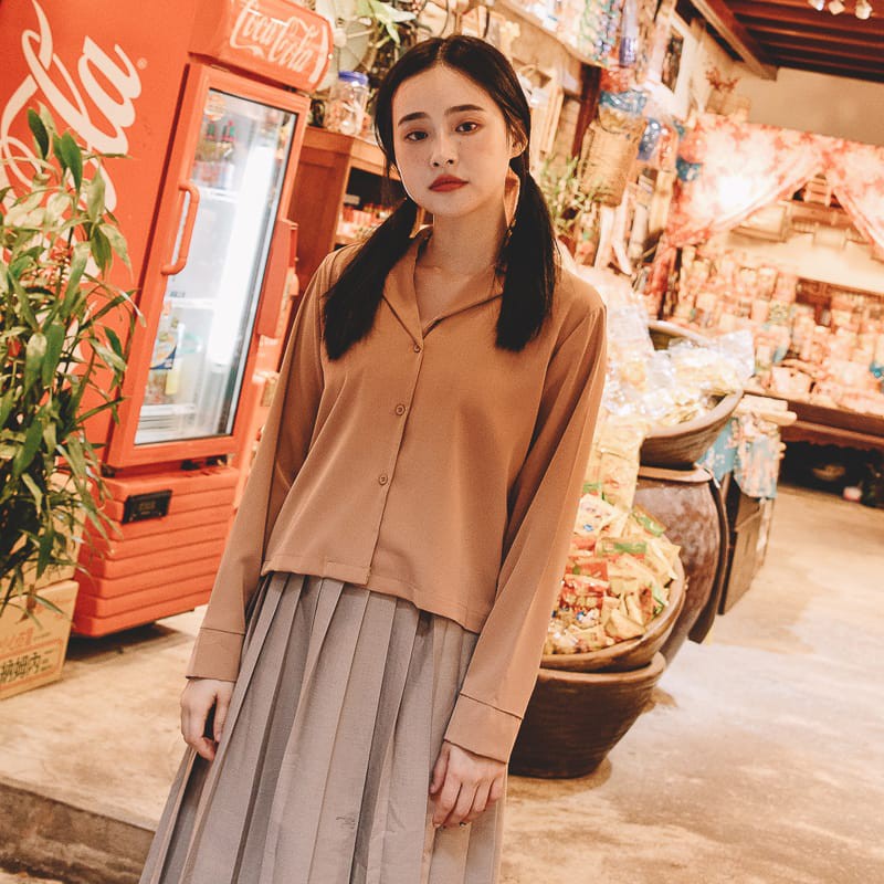 Space Picnic|素面小V領滑料長袖襯衫【C20081082】