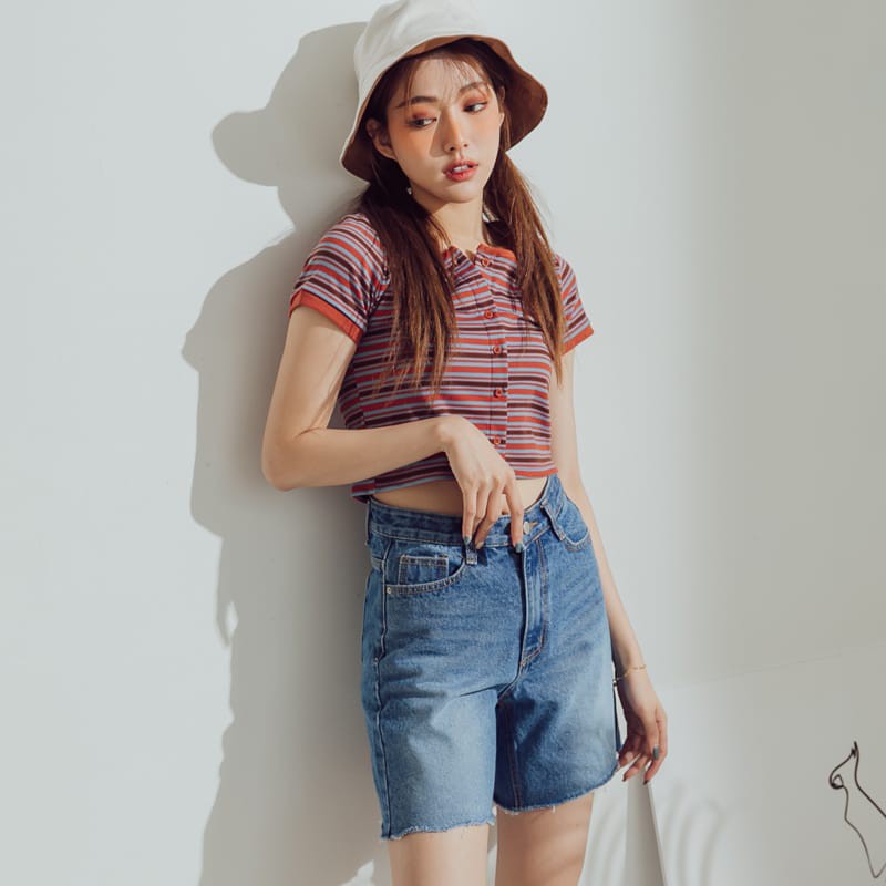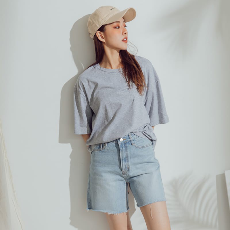 Space Picnic|正韓-不收邊單寧牛仔五分寬褲【K20044008】