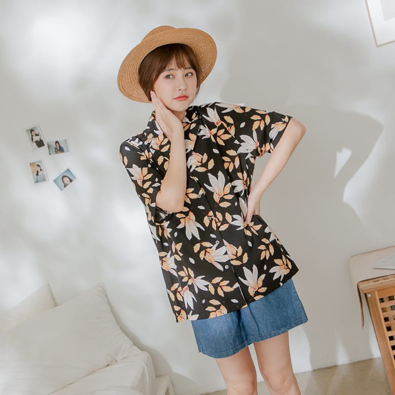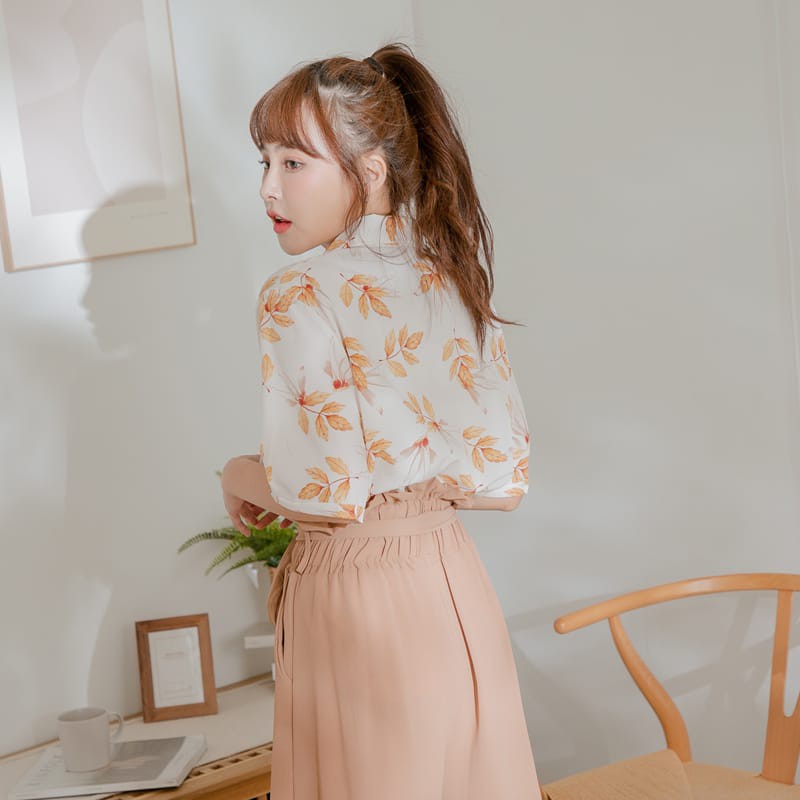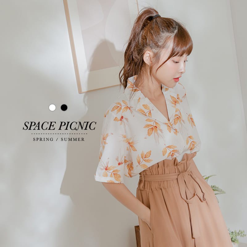 Space Picnic|落葉花紋雪紡短袖襯衫【C21054058】