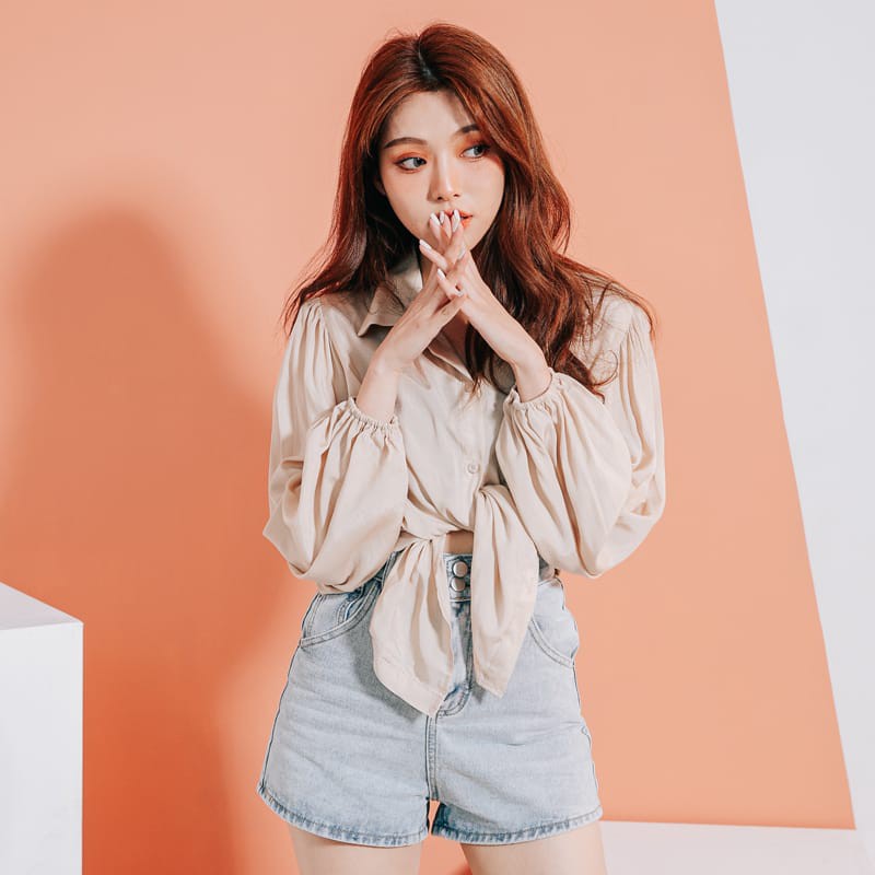 Space Picnic|正韓-微光澤澎袖薄料襯衫【K20044048】