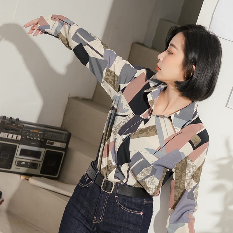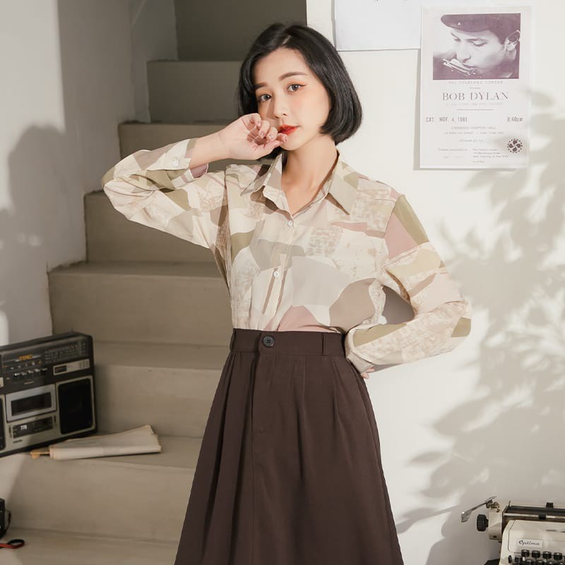 Space Picnic|色塊拼接雪紡長袖襯衫【C20073070】