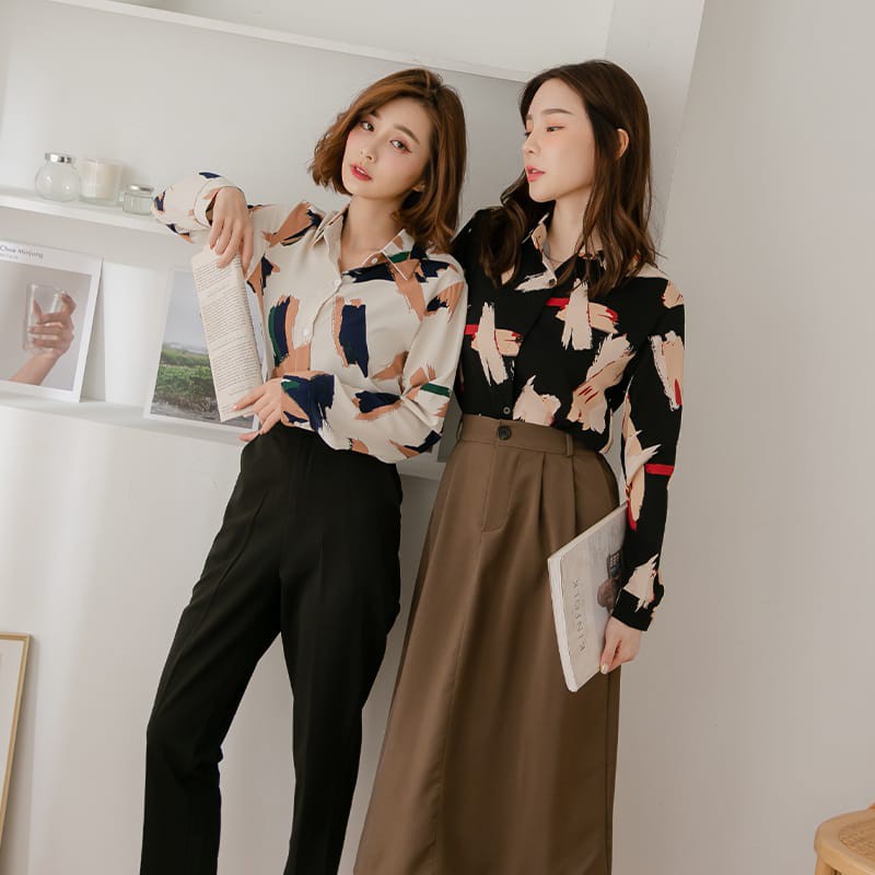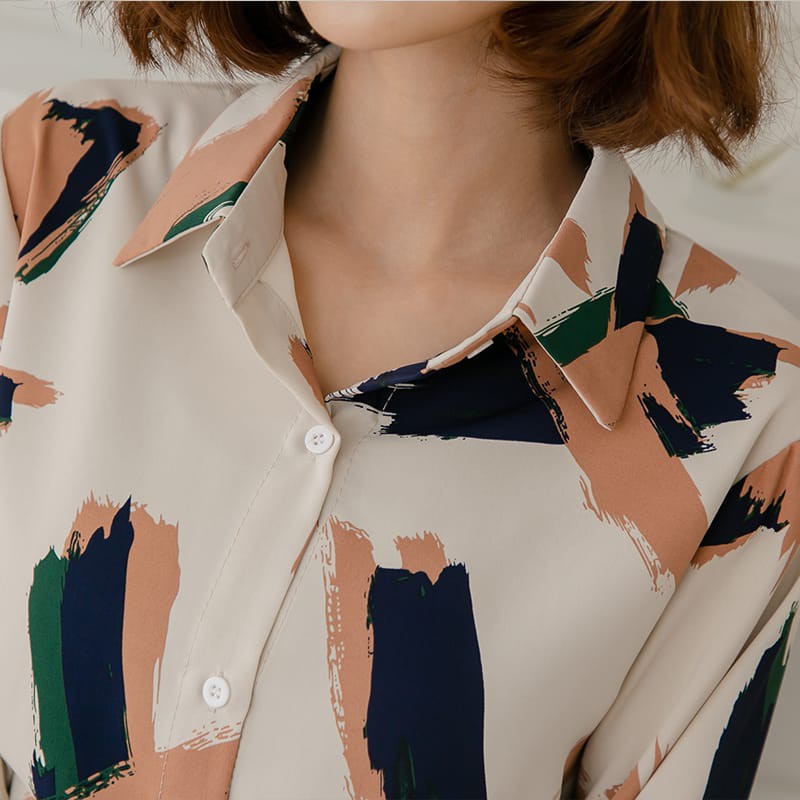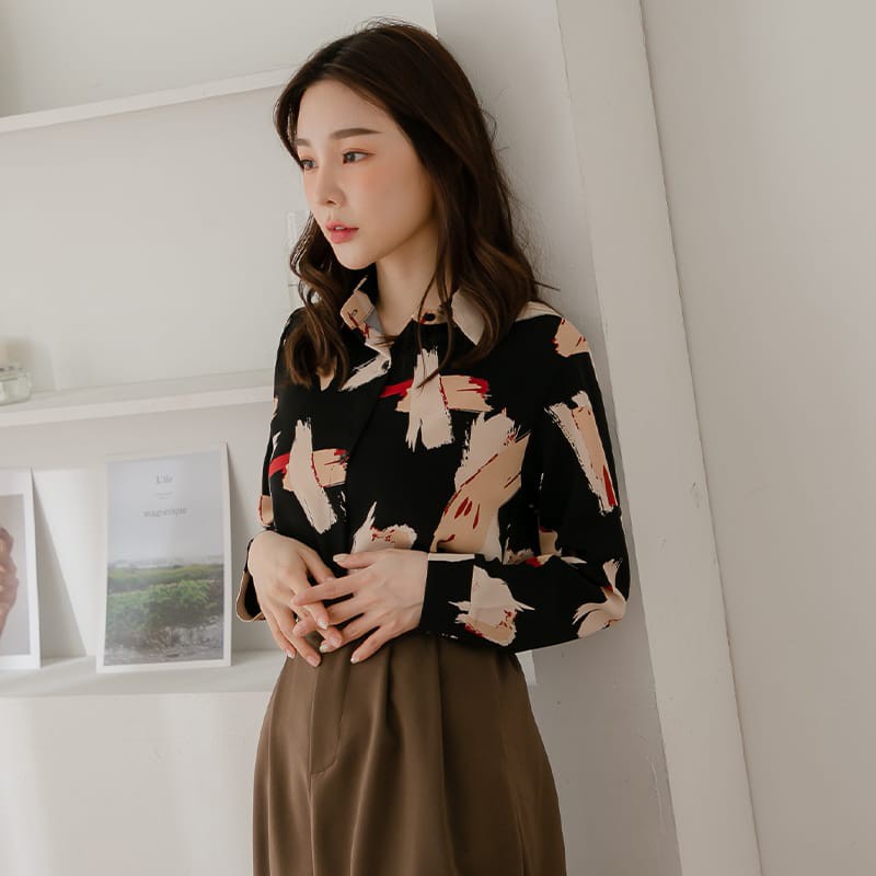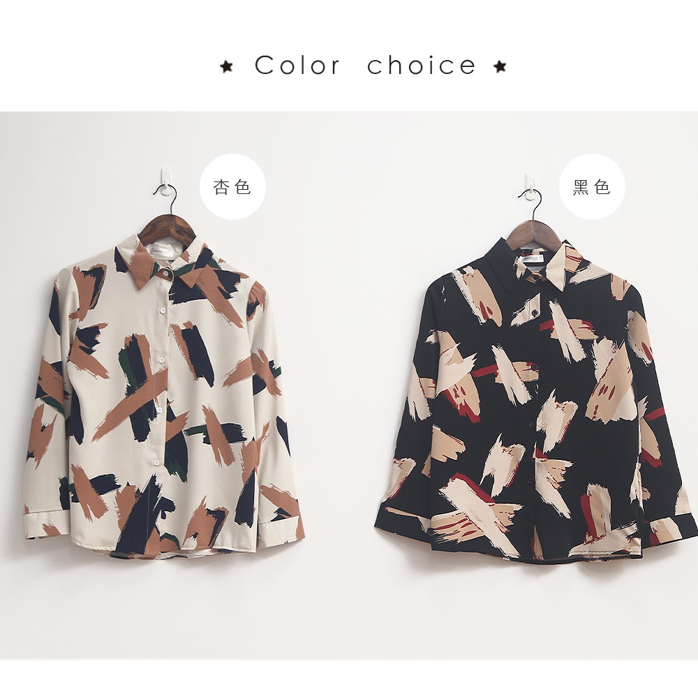 Space Picnic|個性筆刷雪紡長袖襯衫【C21031027】
