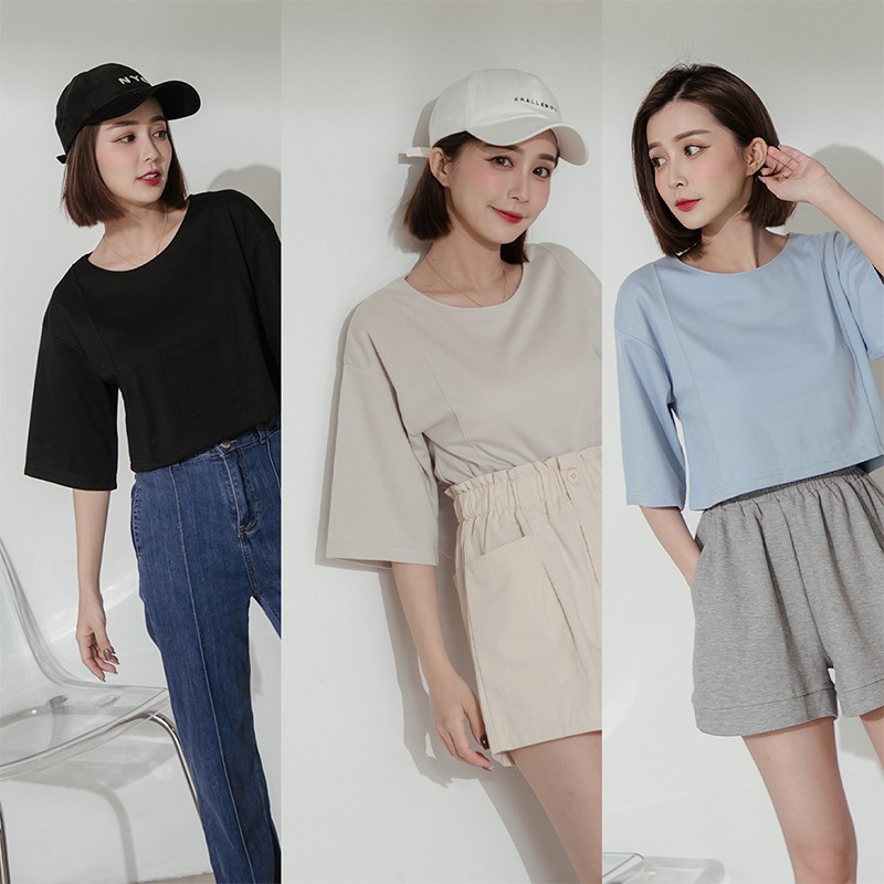 Space Picnic|正韓-素面落肩短版上衣【K21063012】