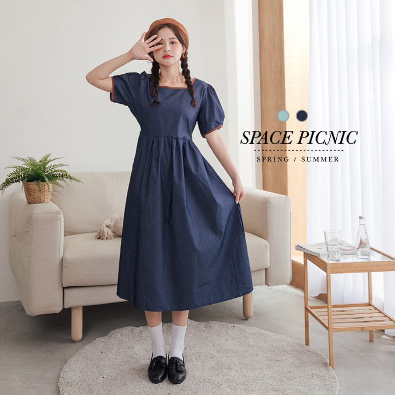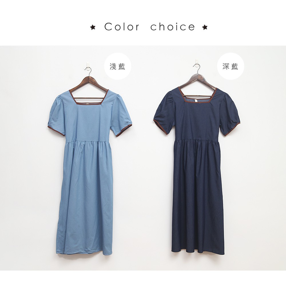 Space Picnic|方領拼色滾邊短袖洋裝【C21052083】