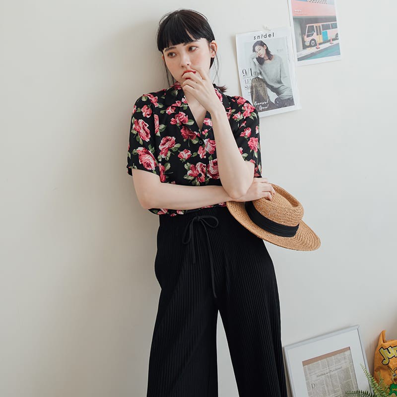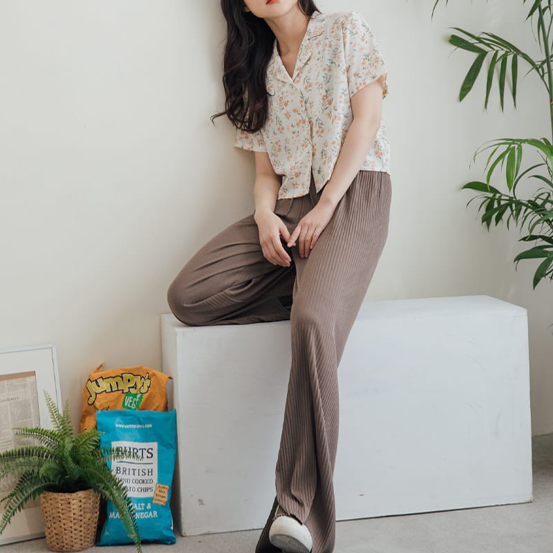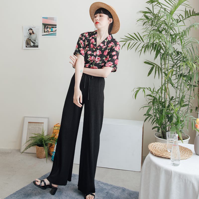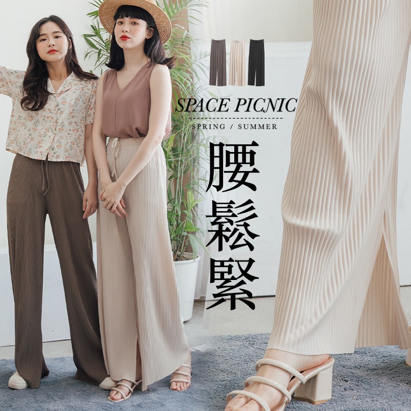 Space Picnic|細坑條綁帶側開岔寬褲【C21034086】