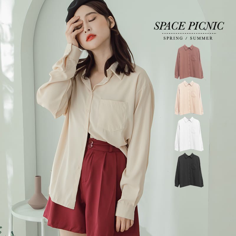 Space Picnic|素面單口袋滑料長袖襯衫【C20053047】